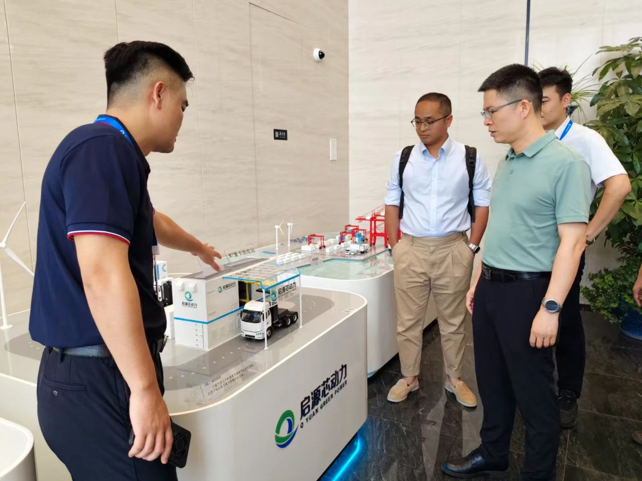 作为国家电投集团旗下的上海启源芯动力科技有限公司,掌握核心换电专利技术,聚焦电动重卡、电动工程机械、电动农机等设备研发、车储共用电池系统研发制造、充换电设施运营与源网荷储一体化项目建设,此前已与广东货司通科技有限公司等合作建设区域数字化交能融合梅州城东能源港项目。王锋一行参观公司电动重卡充换电装备运营场景,观看绿电交通数智云系统演示,详细了解企业科技研发、产品应用场景、市场拓展等情况,并就推动配套产业链上下游项目落地梅县,与企业负责人进行了深入洽谈。他指出,启源芯动力作为国家交通强国建设试点任务牵头单位和电动重卡头部企业,其发展方向与梅县区产业升级需求高度契合。他强调,梅县地处粤闽赣三省交界,正加快建设区域综合交通枢纽,区域内及辐射三省周边的物流运输、工程建设等场景对绿色交通装备需求旺盛,市场潜力巨大,并已形成高端铜箔、装备智造、电力生产等产业集群,享有《梅州方案》及省配套政策、“免费梅州”等多重红利,为绿电交通产业发展提供了坚实支撑。希望双方围绕电动重卡应用推广、充换电设施建设运营、虚拟电厂等领域深化合作,推动在梅布局新能源动力电池生产项目、设立区域销售中心,带动本地上下游企业切入其产业链供应链,共同开拓粤闽赣边绿电交通市场,携手打造辐射区域的高效绿色交通与能源融合产业生态圈。