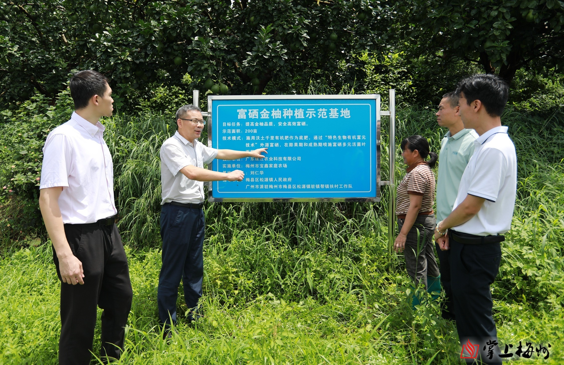“我们还与广东珠江农业科技有限公司签订战略合作协议,通过科技帮扶,探索打造富硒柚、富硒米、富硒有机蔬菜生产基地。”吴爱兵说。在桥背村的富硒梅菜种植示范基地,经过去年专家采用叶面富硒技术进行外源富硒种植,今年收成后制成梅菜干产品后经检测硒含量为0.377mg/kg,达到《富硒农产品》行业标准;计划下半年在青塘村和五星村建立富硒大米种植示范基地,提升粮食的附加值,提高农户种粮的积极性。