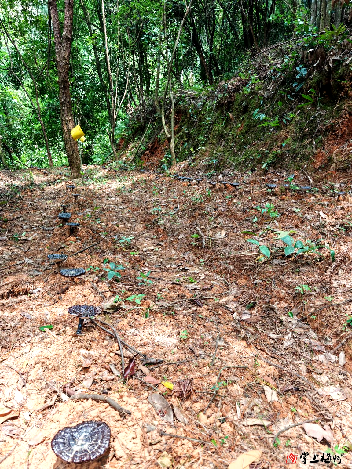 近日,梅县区石坑镇杨化村春季种下的500棒紫芝迎来了丰收季,一朵朵饱满的紫芝亭亭玉立,部分已开始喷粉,呈现出一派生机勃勃的丰收景象。这背后,离不开梅州市农林科学院微生物研究所农村科技特派员团队的全力帮扶。