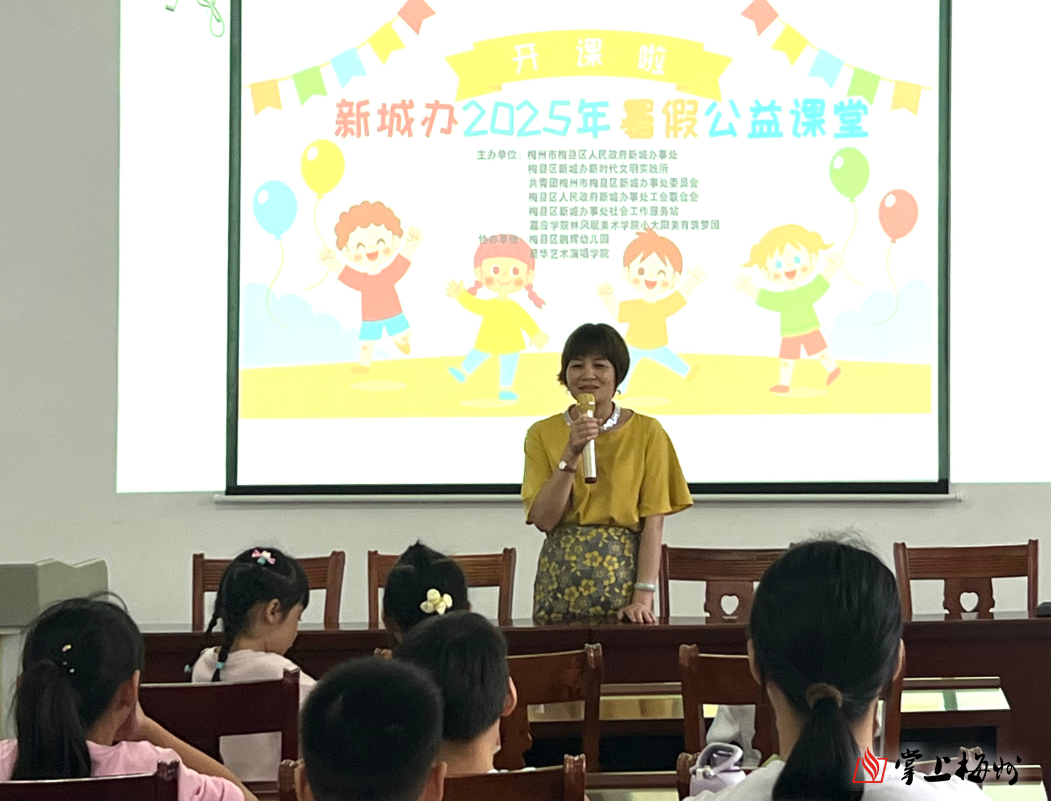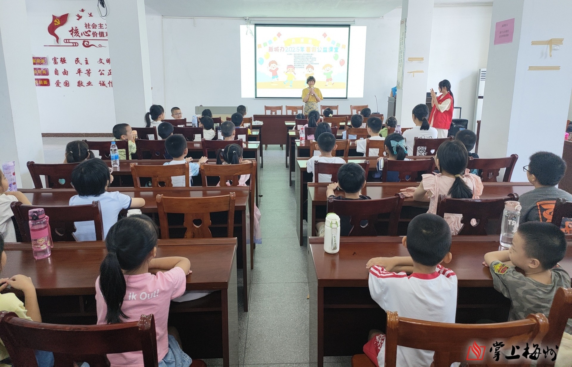 掌上梅州讯 7月14日,由梅县区新城办团工委、工联会、社工站等部门举办的新城办2025年暑期公益课堂在梅县区新城党群服务中心三楼开课。该公益课堂聚焦45名儿童,构建“学业支持+兴趣培养+安全护航”三位一体服务体系,为孩子成长护航。