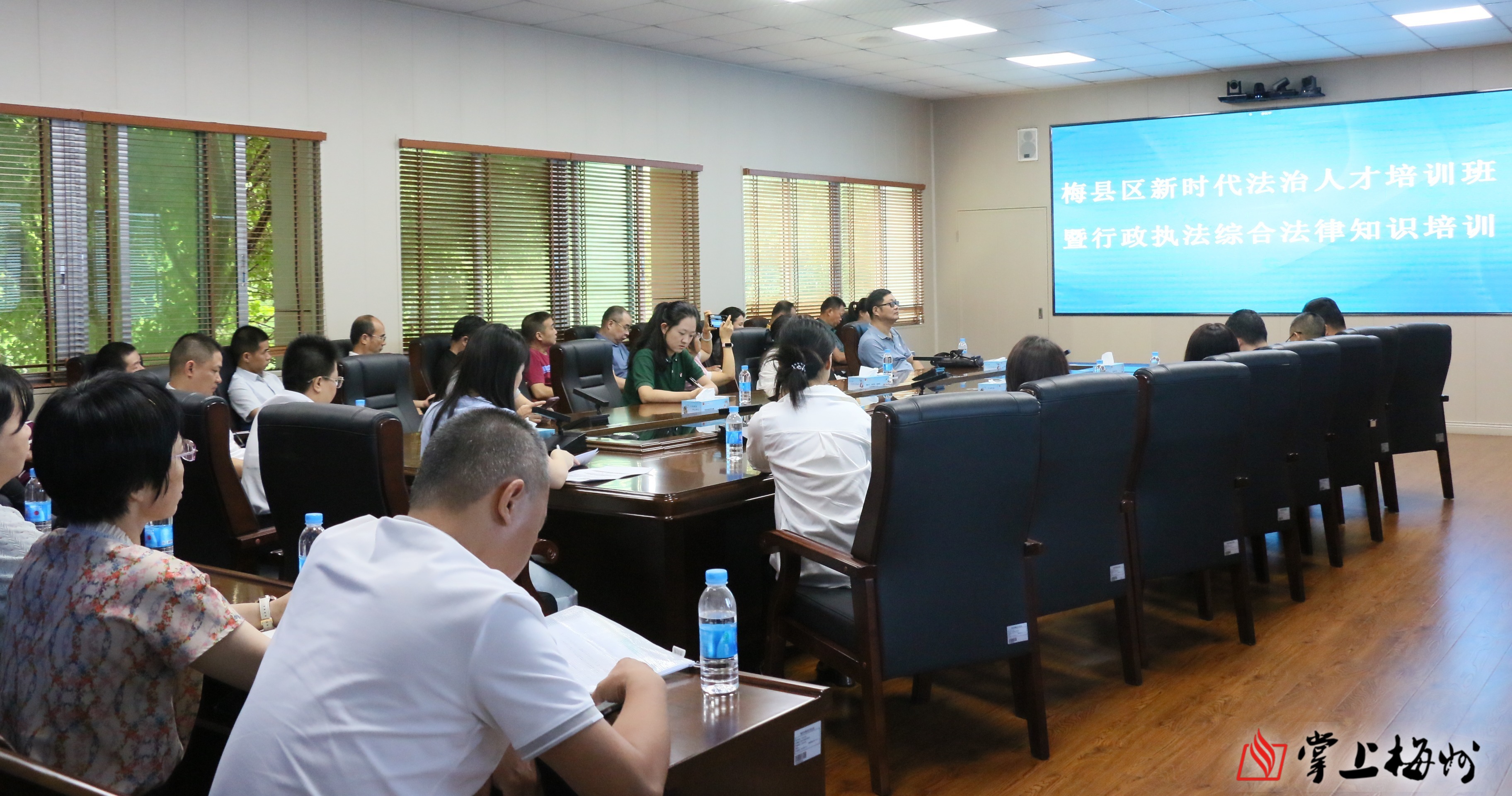 掌上梅州讯 7月21日,梅县区举行新时代法治人才培训班暨行政执法综合法律知识培训班,各镇(高管会、办事处)、各执法单位的业务骨干和相关企业代表共50多人参加培训。