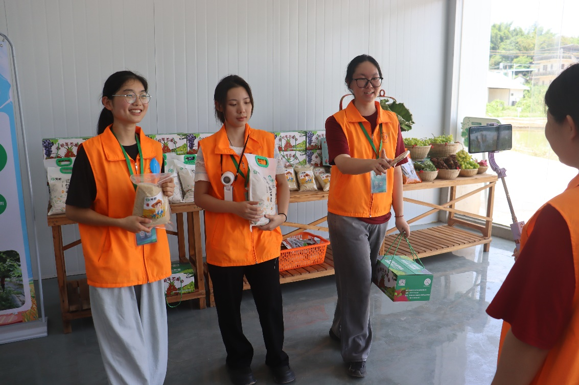 在畲江镇咸和村葡萄节活动中,服务队队员们化身“带货主播”,通过镜头生动展示阳光玫瑰、夏黑葡萄的原生态生长环境和健康种植的理念,借助直播间互动、限时优惠售卖福利等形式,吸引数百名网友观看,获赞量达10000+,助销葡萄200余袋。在5G智慧蓝莓基地,队员们实地了解蓝莓和鸡肉菌的种植模式、生长环境要求以及销售情况,深入认识了特色农产品的生产链条,让数字工具切实成为连接田间地头与消费市场的“桥梁”。