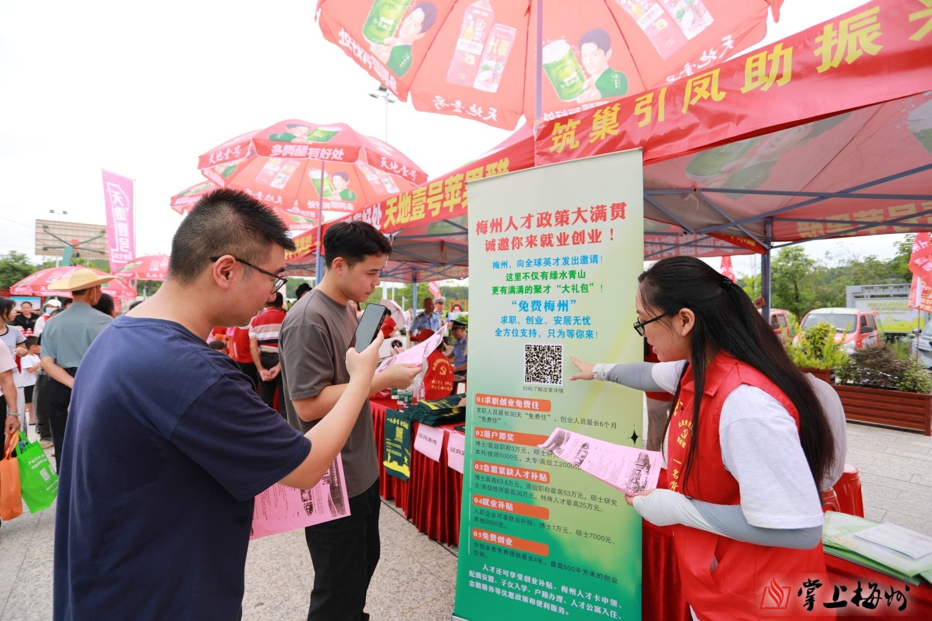 香气扑鼻的新鲜黄金百香果,令人眼花缭乱的鸡枞菌、丝苗米、腐竹等特色农产品……在罗墩村春天广场活动现场,闻香而来的群众络绎不绝,工作人员则在展位上忙得不亦乐乎,大家齐聚于此一起分享丰收的喜悦。“这届百香果节以‘百香沁梅西•客商庆丰收’为主题,现场设置了百香果等梅西农特产品的推介与品鉴区、反诈业务‘普法’宣传区、惠民助农服务区、梅州人才政策宣传区和企业招聘区等,打造集展示、体验、销售、交流于一体的丰收盛会。”梅西镇党委委员陈志介绍道。