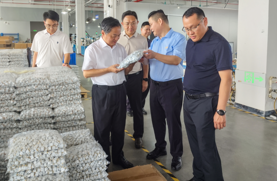 在东莞市正好电气有限公司,温助民仔细参观了工厂先进智能设备、技术实验室,听取企业智能智造、零部件加工等方面的创新和布局。该企业是电子产品配件行业龙头企业,主要生产插头内架、开关、高频变压器等电气相关元件,产品出口欧洲,在生产标准、产品价格等方面拥有行业话语权。温助民介绍,梅县区工业基础良好,正不断做大做强高端铜箔、机械智造、智能家电“2+1”现代产业,联动发展“一区一港一园一地”产业平台,梅县产业园配套完善,梅州综保区、梅州国际陆港“区港联动”“海铁联运”作用凸显,用地、用电、运费等成本逐步降低,是企业投资发展的福地。希望梅县籍企业家关心家乡变化,踊跃参与梅县“百千万工程”,探寻互利共赢机会,积极回梅投资兴业。