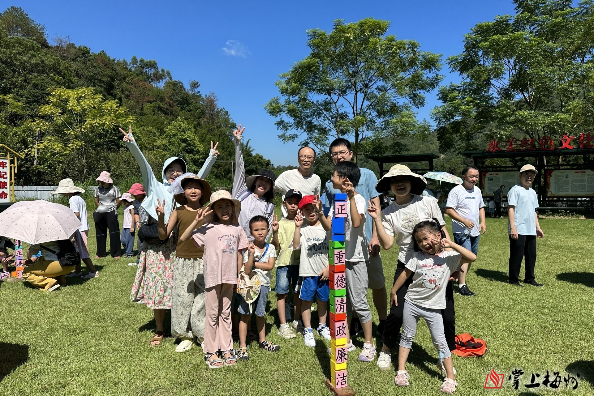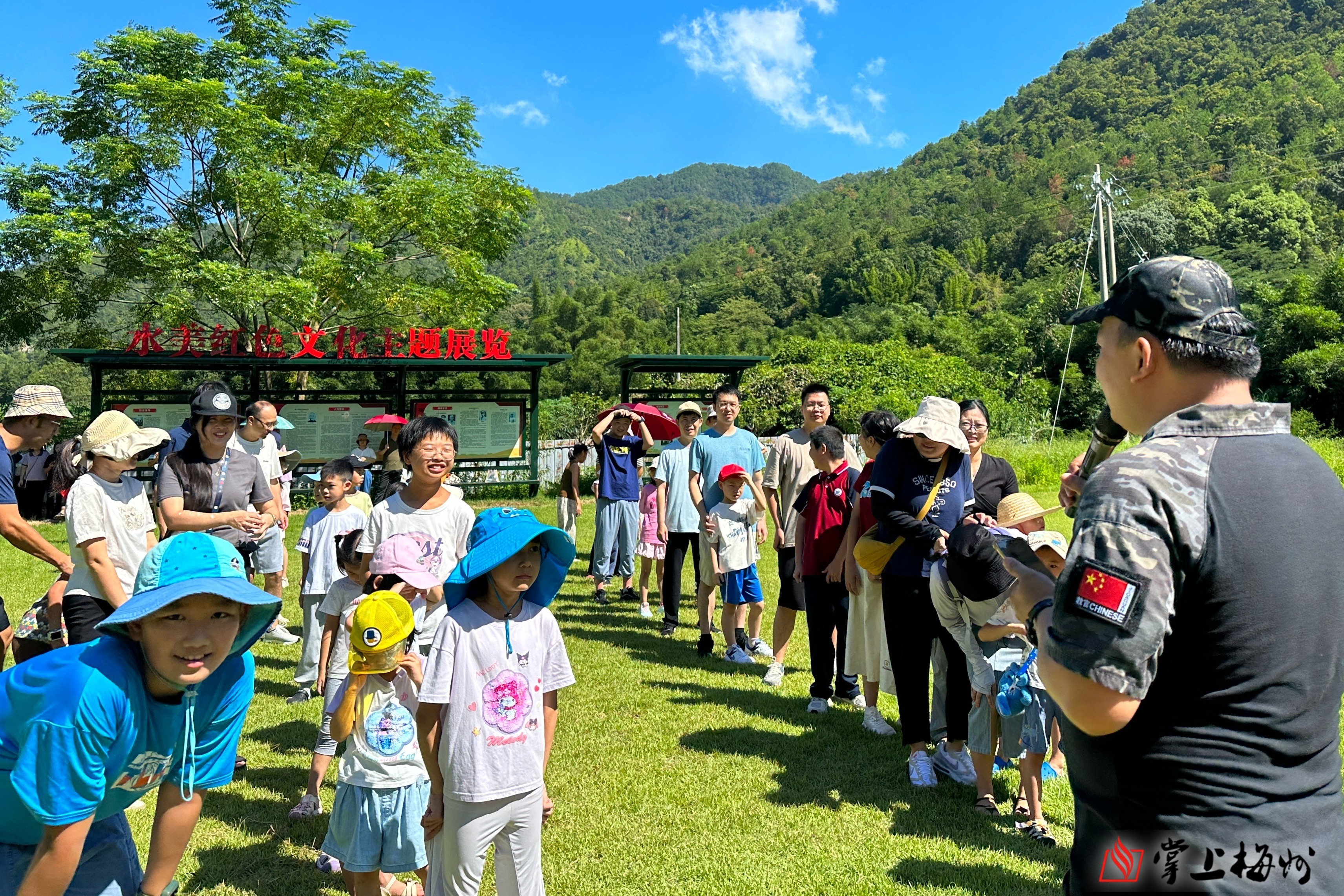 暑假期间,家长和小孩在梅县区梅南镇水美村参加户外拓展活动。