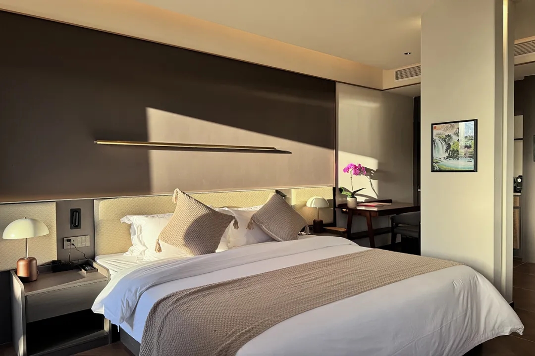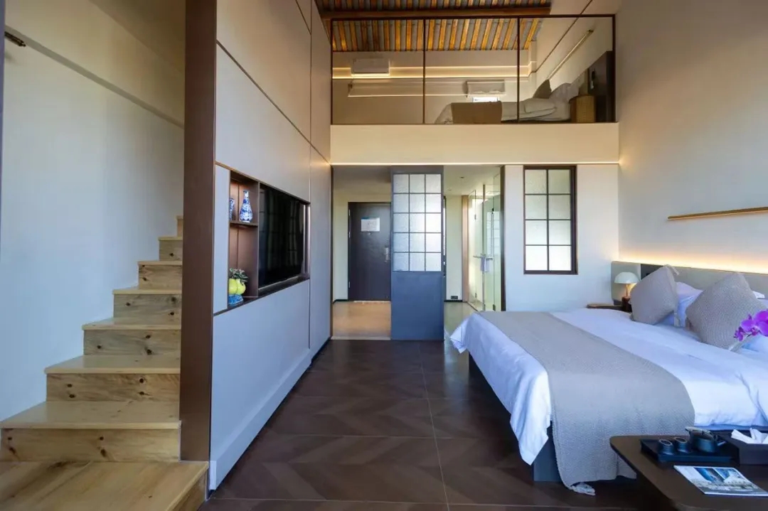酒店建筑面积1808平方米,拥有18间客房,结合了现代设计和在地文化,提供轻奢的居住环境。酒店还设有餐厅、书香吧、星空吧、观江长廊、中庭花园、露天后花园等配套设施,以“慢享时刻 最美遇见”的经营理念和匠心品质,让宾客在松口放慢脚步、品味生活,感受悠然雅致的生活方式。酒店自2024年11月开业以来,共接待省市区各级政府参观访问约43批次,长期在携程平台上位居梅州市精品民宿榜的榜首,广受社会各界赞誉。