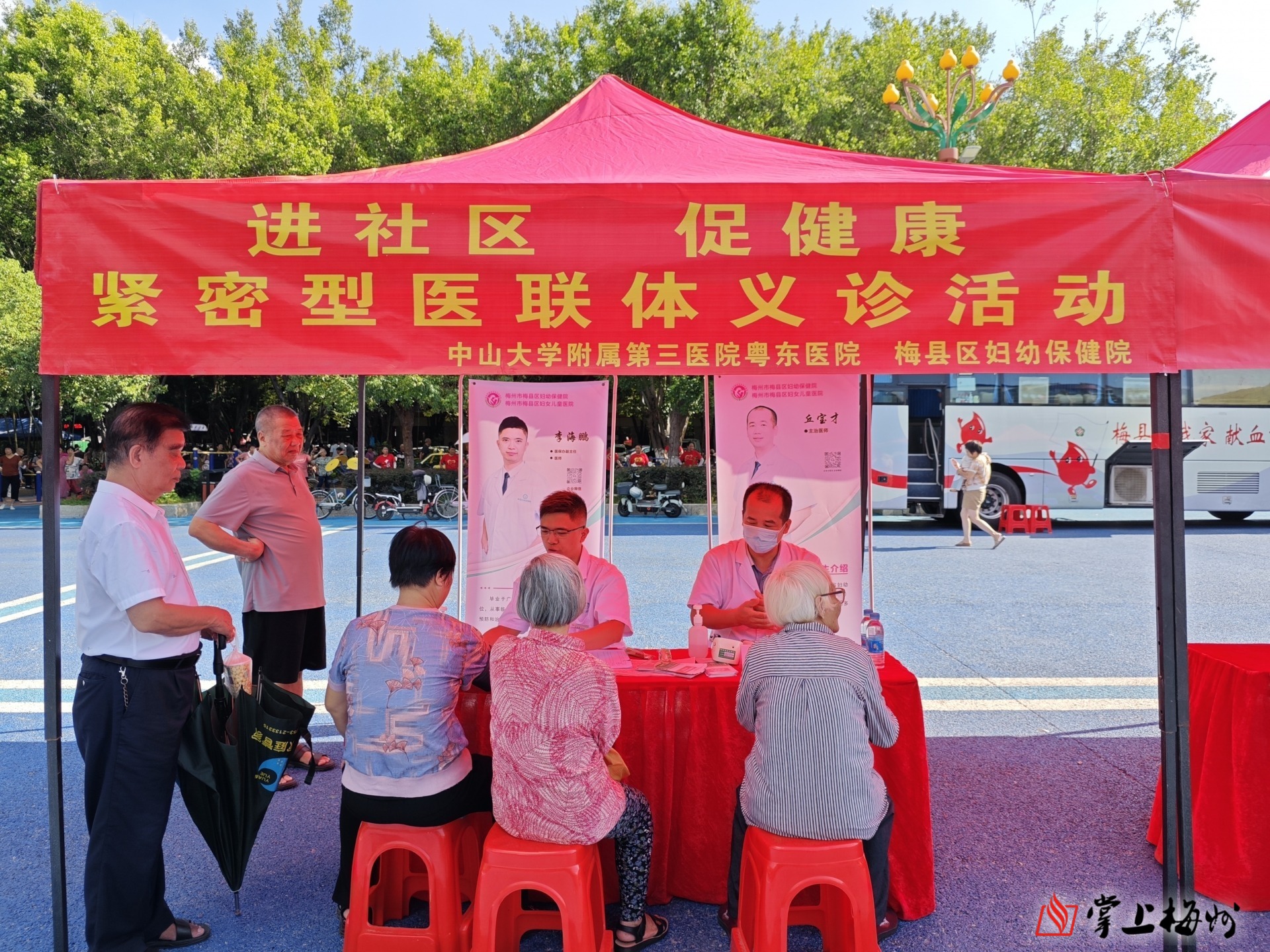 活动现场,来自梅县区爱卫办、梅县区计生协、梅县区妇幼保健院、中山大学附属第三医院粤东医院、梅县区中医医院、梅县区疾控中心、梅县区慢性病防治院等多家医疗卫生单位的工作人员和医务人员为群众开展了义诊、健康咨询以及科普宣传,向群众普及出生缺陷“三级预防”“出生一件事”、普惠托育、育儿补贴、基本公共卫生服务等相关政策,同时还进行了孕期营养、“三减三健”、老年人健康管理、预防基孔肯雅热和登革热等知识宣传,倡导科学预防理念及健康生活方式。