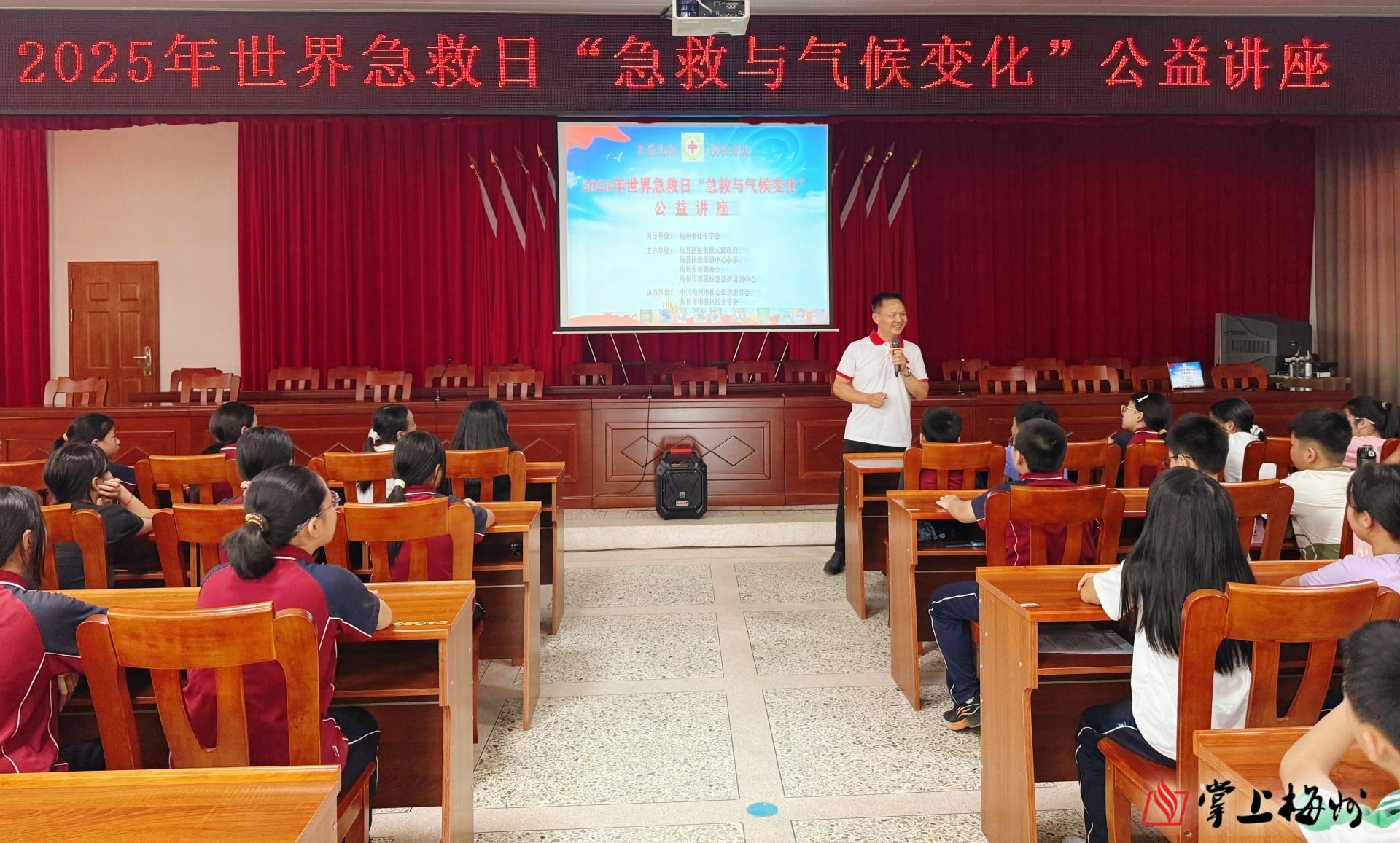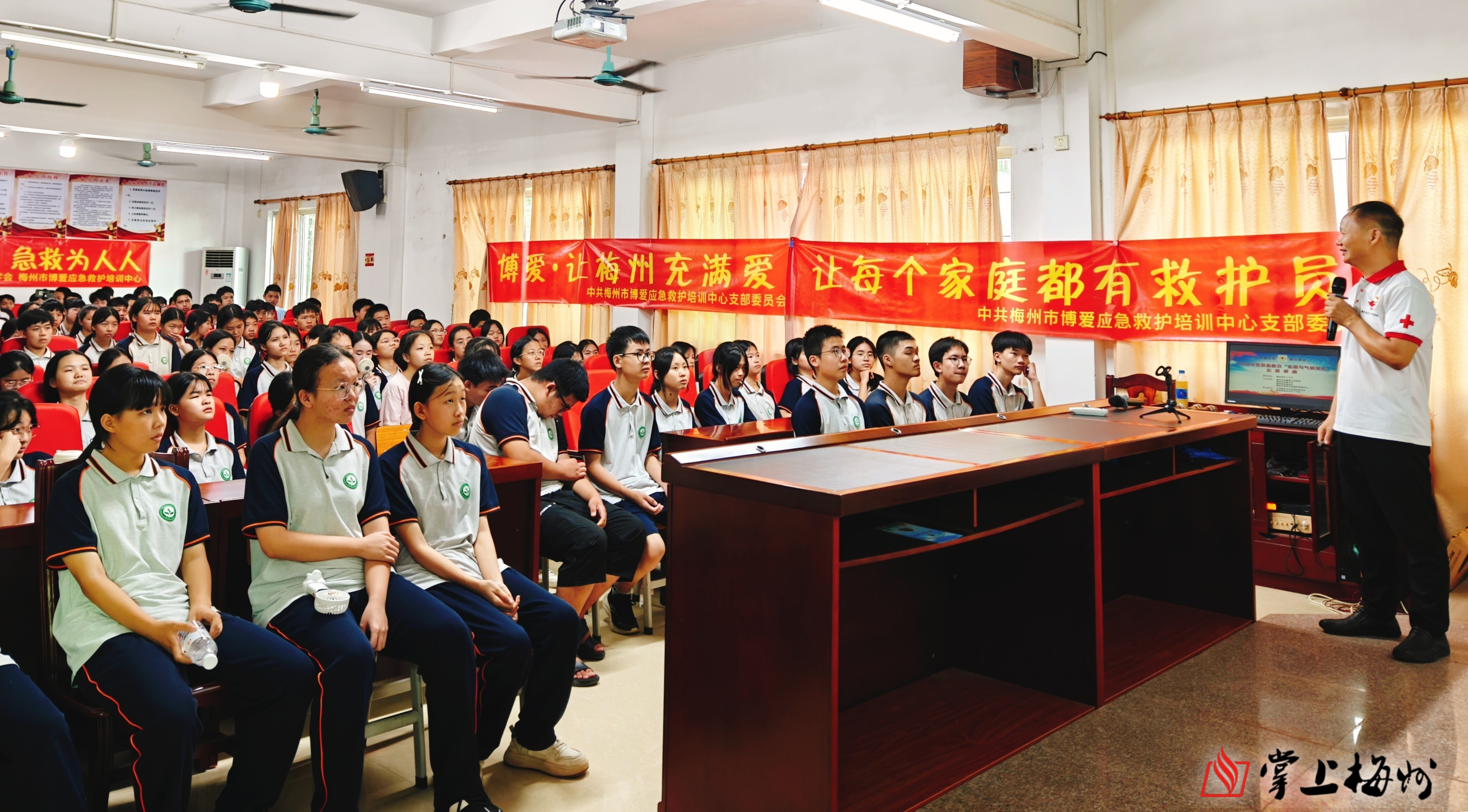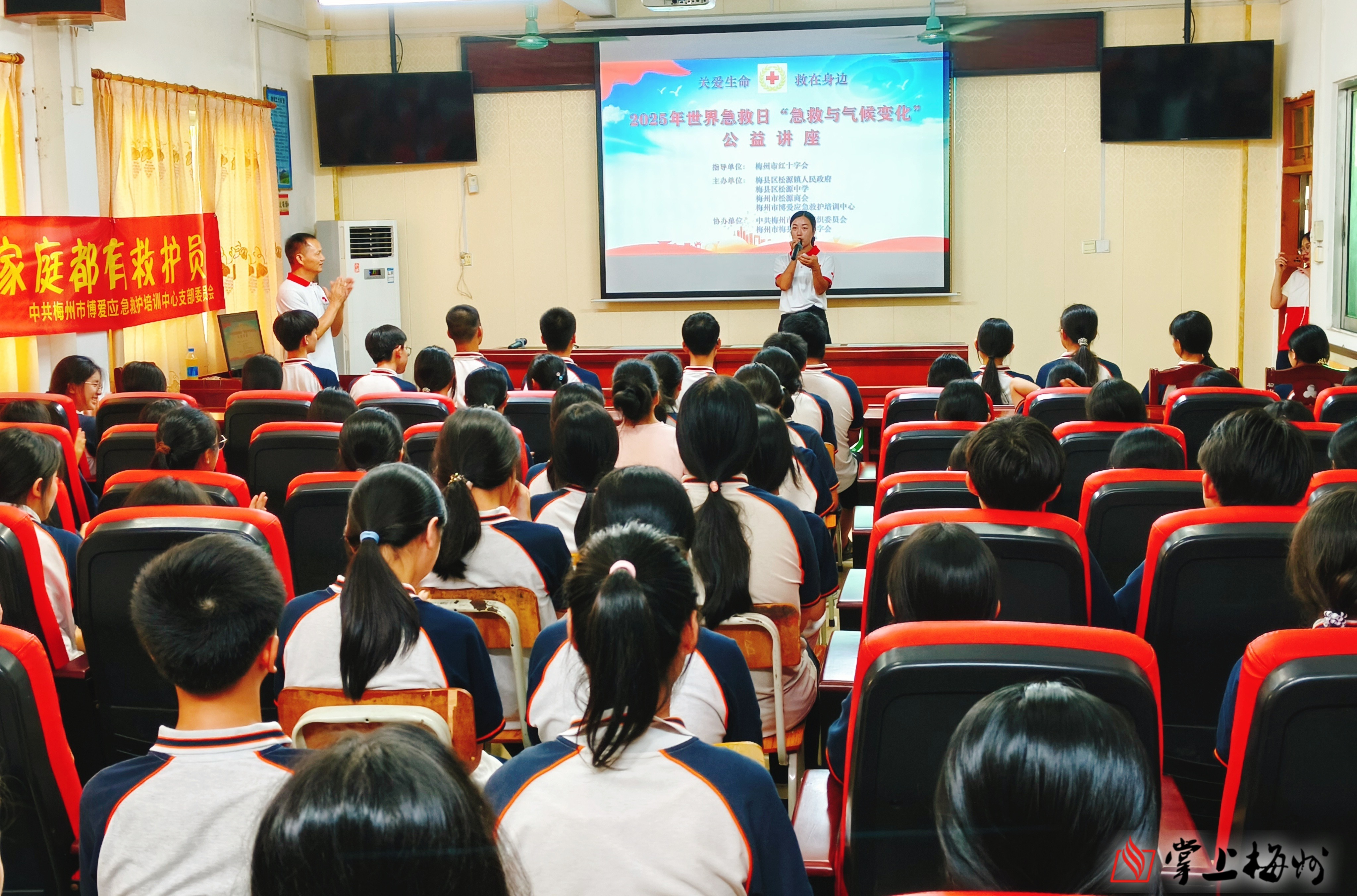 掌上梅州讯 每年9月的第二个星期六是“世界急救日”,今年9月13日是第26个“世界急救日”,主题为“急救与气候变化”。日前,在梅州市红十字会的指导下,由梅县区松源镇政府、梅州市松源商会、梅州市博爱应急救护培训中心联合梅县区松源中学和梅县区松源镇中心小学主办,中共梅州市社会组织委员会和梅县区红十字会协办的应急救护公益培训走进梅县区松源镇学校,将守护生命的技能带进校园。