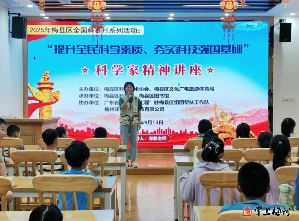 在梅县区新时代文明实践中心举办了以“弘扬科学家精神”为核心的讲座,50余名青少年参与其中。活动开始,播放了钱学森、袁隆平等科学家的经典影像短片,引发青少年的情感共鸣。随后,科技教师依托“国之脊梁”板块,深入讲解了钱学森归国研“两弹”、屠呦呦研发青蒿素、南仁东筑“天眼”等事迹,让青少年深刻领悟到科学家们的坚守、担当与奉献精神,感悟科学精神内涵,进而弘扬科学精神和科学家精神,激发青少年对科学的探索欲与兴趣。