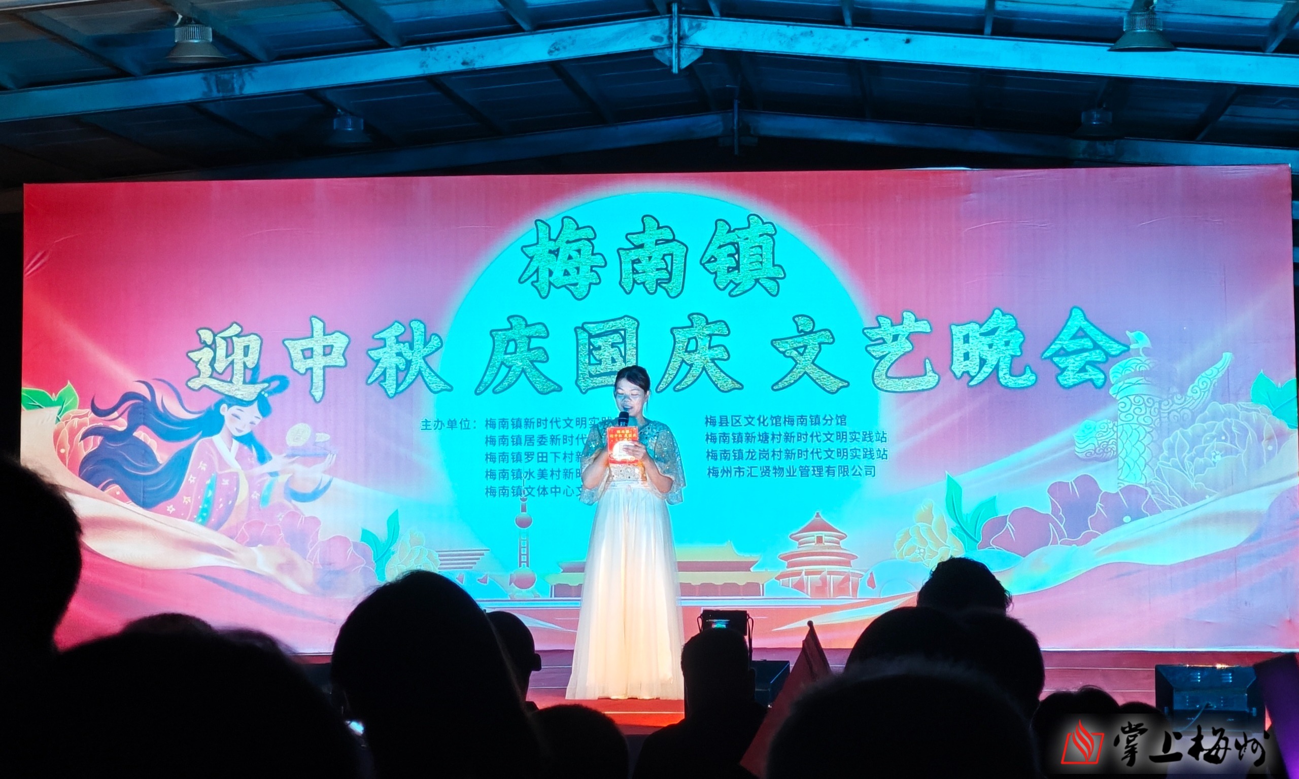 掌上梅州讯 金秋送爽,双节同庆。10月1日晚上,梅县区梅南镇汇贤家园农贸市场灯火璀璨、人声鼎沸,由梅南镇人民政府主办、梅南镇文体中心文艺队承办的“迎中秋 庆国庆”主题晚会在此温情上演,近百名干部群众欢聚一堂,在歌舞声中共度美好夜晚。