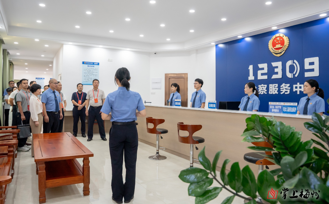 视察的第二站来到了梅县区检察院的“阳光未检”青少年法治教育基地、12309检察服务中心和检察听证室。代表们现场感受了“可看、可听、可触摸”的立体化法治教育模式。