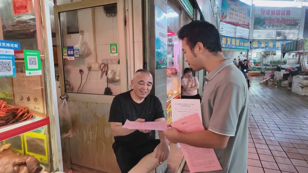 在扶贵市场,记者看到市场入口、公告栏等醒目位置张贴了预防基孔肯雅热的宣传海报,普及防蚊灭蚊知识,提醒商户和市民注意防范。同时,扶贵村的工作人员还到市场内,向各摊档、商户、市民发放宣传折页,讲解“清积水、防叮咬”的重要性,引导商户自觉维护摊位周边卫生,主动参与防蚊灭蚊行动。