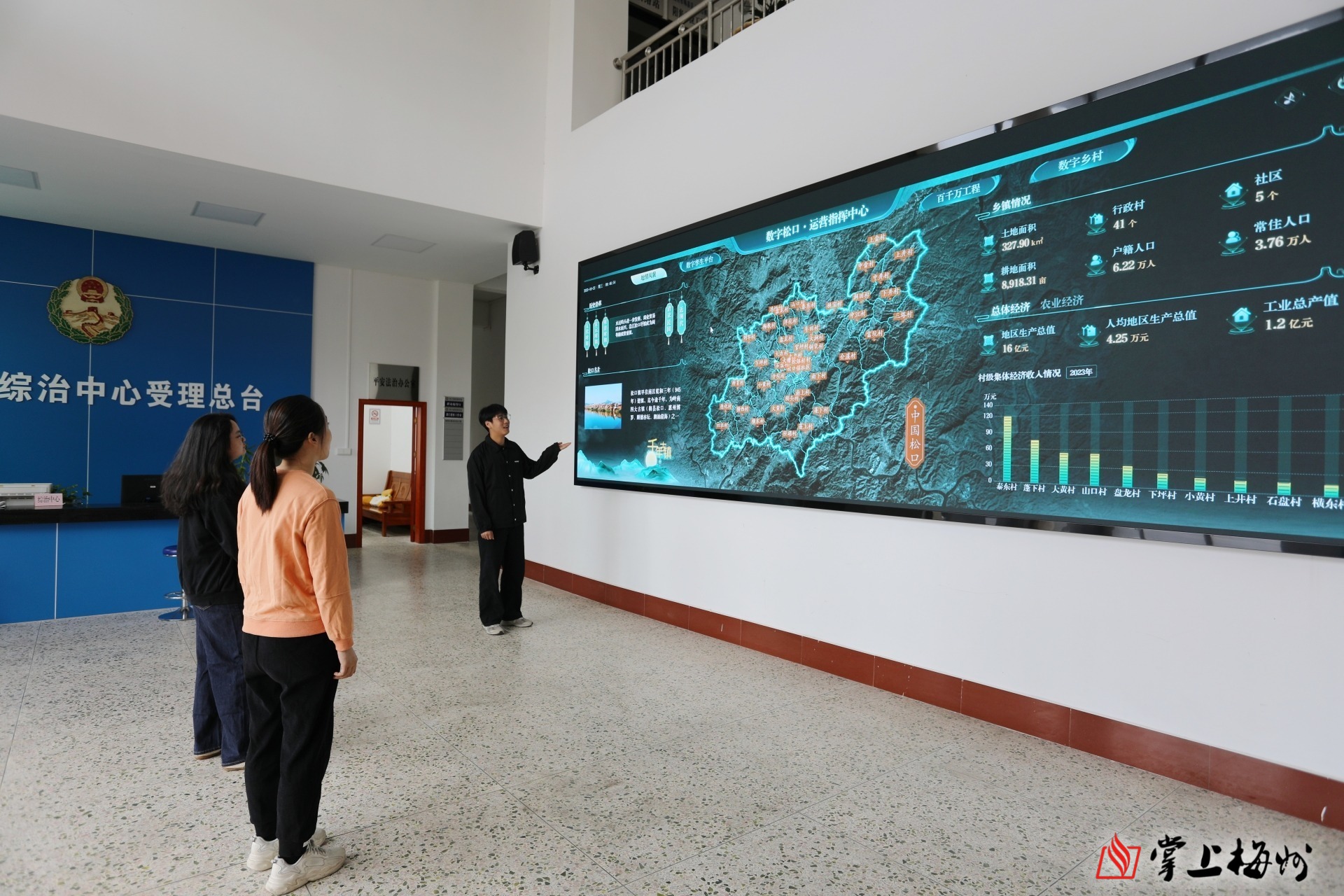 “‘数字松口’运营指挥中心平台汇聚了全镇各类数据要素,包括基础地理信息、规划管理、三维实景等数据资源。其中数字乡村板块,涵盖了乡村的生产、生活、治理和文化等多个方面,以大黄村作为先行示范村,试点探索乡村文化、乡村生产等方面开展数据治理及应用。”在松口镇综治中心,工作人员向记者介绍道,通过该平台可支撑全镇数据的共享应用,数字化赋能“百千万工程”典型镇村建设。