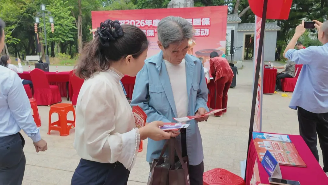 活动现场,工作人员通过设立咨询台、发放宣传资料、现场讲解等方式,向群众详细介绍2026年度城乡居民医保参保缴费标准、报销比例、长期护理保险政策以及“梅州惠民保”的保障内容、参保方式等。许多群众驻足咨询,工作人员耐心解答,场面温馨有序。此外,活动现场有医护人员开展义诊,为群众测量血压、答疑健康问题。同时,文艺表演团队带来特色节目,让政策宣传在热闹氛围中更入人心。