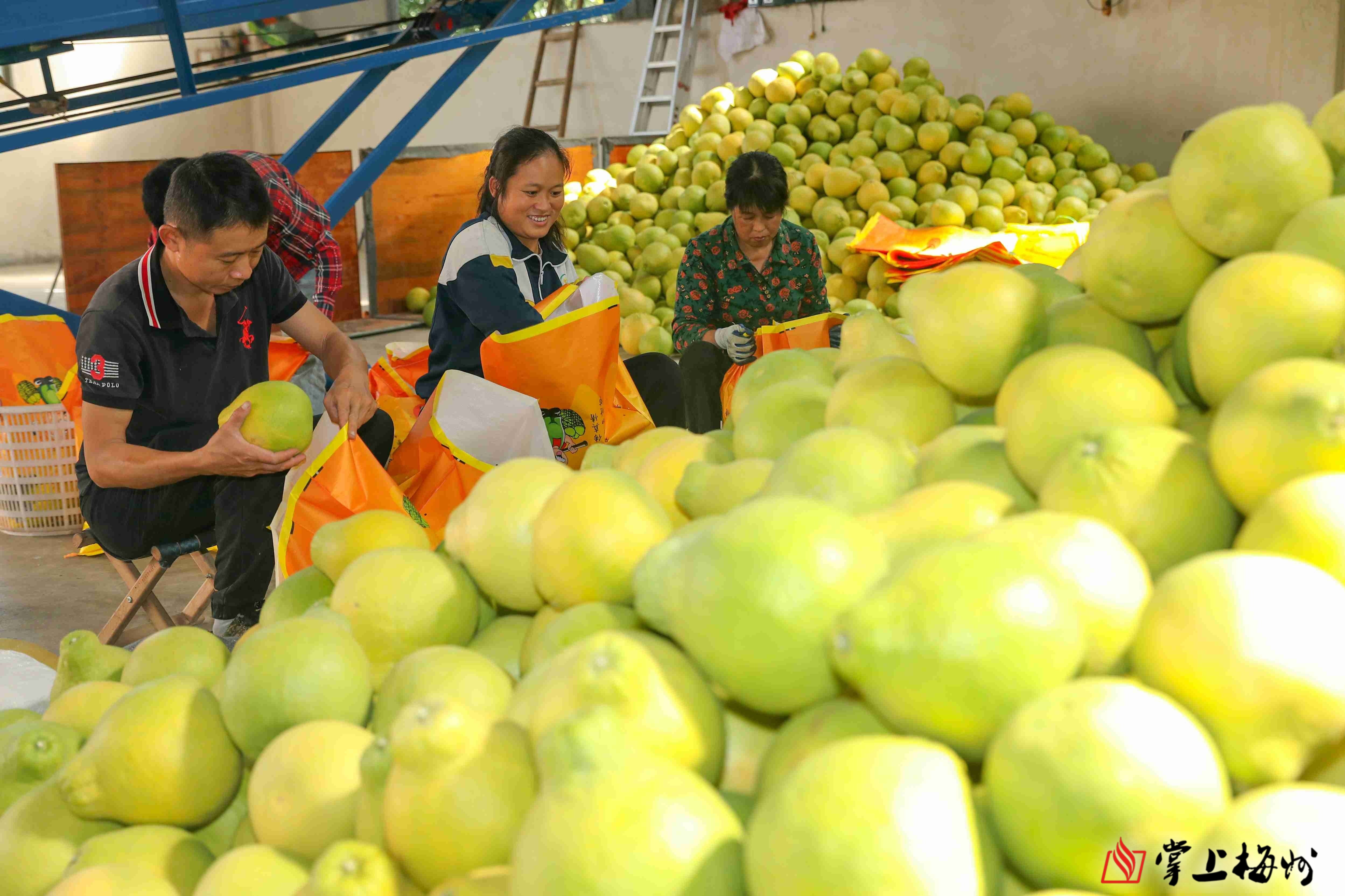 随着新鲜柚果不断运入,石扇镇西南村端记水果合作社也开足了马力,进入生产忙碌期。在柚果仓库,记者看到流水线有条不紊地运转,对金柚进行清洗,按照大小、品相进行分拣分级,工人们则熟练地打包金柚,以便装车运往外地销售。“我除了自己种柚子,也跟附近柚农合作,根据柚子品质来定收购价。”端记水果合作社负责人谢志敏说,合作社严把柚子质量关,每年都收购几百万斤优质柚销往珠三角地区和湖南省。