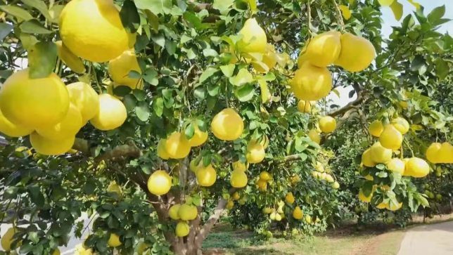 端记水果合作社负责人陈燕:“我们的柚子首先要从果园拉过来,然后清洗,清洗后工人在后面挑选、分类。我们跟抖音平台(合作),有主播会过来,我们为他供货,然后他自己直播带货出去。(金柚)会销往广东、广西、湖南等地,至少要(卖)200万斤。”