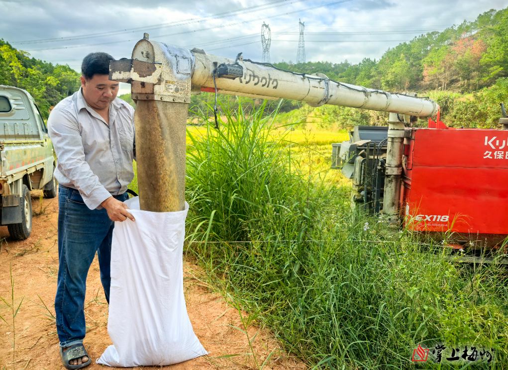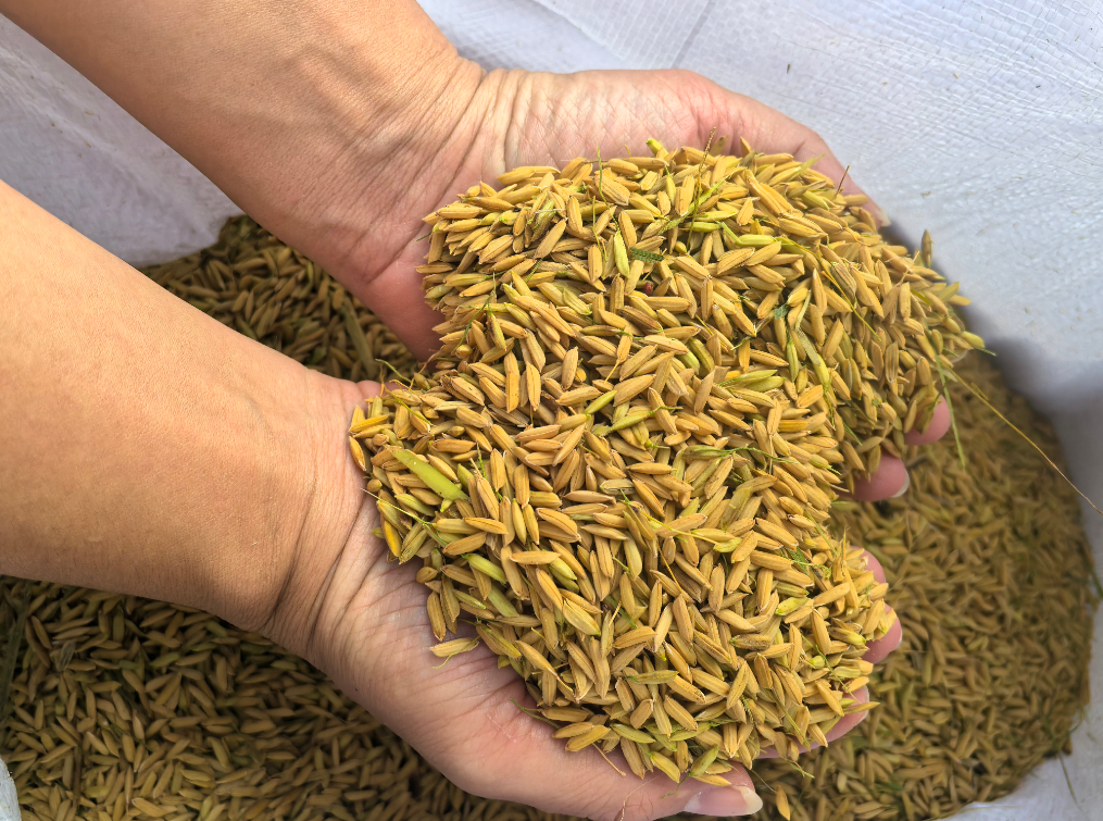 在畲江镇太湖村农业示范基地,嘉应学院农村科技特派员及嘉应学院“双百行动”团队、梅县区农业农村局相关工作人员严格按照测产程序,随机选取田块,对水稻的株行距、穗长、有效穗数等关键农艺性状进行了系统测量,并实施机械收割、现场装袋与称重。经核算,该田块亩产达450公斤,直观展示了节水抗旱稻在本地种植条件下的良好丰产性。