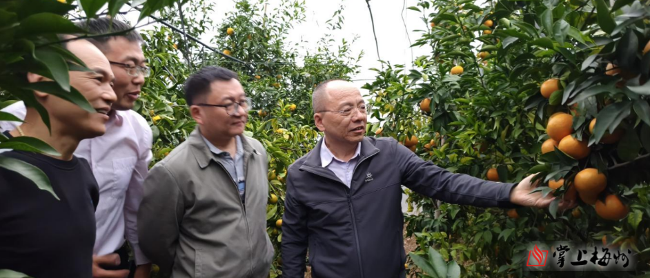 12月2日,丙村镇工作队引导调研组考察银场村沃柑园。