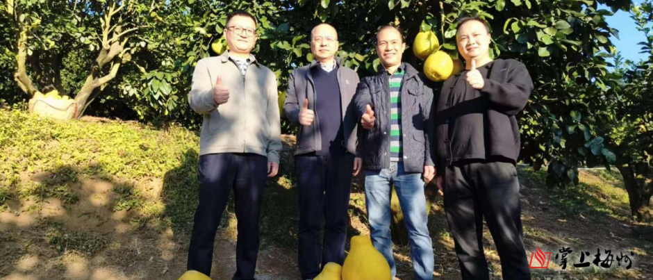 12月1日,丙村镇工作队引导调研组考察南福金柚种植基地。