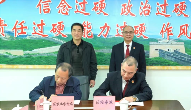 为深入贯彻落实梅州市检察院、梅州市农业农村局《关于深化检农协作 服务保障“百千万工程”三项行动工作方案》,进一步凝聚检农合力、强化法治护航,近日,梅县区检察院联合梅县区农业农村局召开检农协作座谈会暨实施意见会签仪式。梅县区检察院党组书记、检察长李培军,梅县区农业农村局党组书记、局长李新泉出席会议并作讲话。会议由梅县区检察院党组副书记、副检察长唐伟中主持,检农两家单位相关业务部门负责人参加会议。