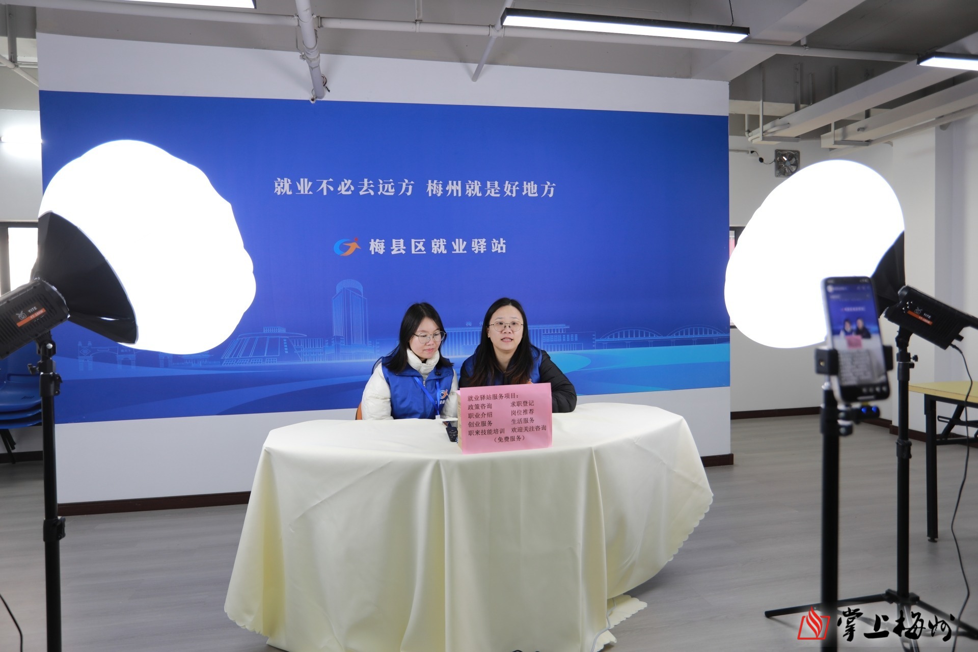 “找工作的小伙伴们,停下脚步,听听我们今天给大家带来的岗位信息……”在梅县区就业驿站(天虹店),主播妙妙邀请企业代表走进直播间带岗,从薪资待遇、工作时间等方面推介岗位信息,耐心解答公屏提出的问题,让求职者足不出户就能“云逛招聘,求职找工”。“我们在直播间与求职者实时互动,解答疑问,有效提升了求职效率与体验,为求职者提供更好的服务。”主播妙妙告诉记者。