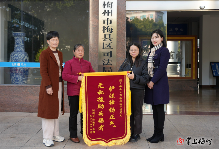 掌上梅州讯 近日,梅县区司法局法律援助处收到受援人张某云、张某芳姐妹联名送来的锦旗,锦旗上“护法律扬正气 无私援助为弱者”的字句,承载着受援人对法律援助工作者及承办律师诚挚的感谢,这也标志着一桩历时近一年、历经一审、二审及强制执行程序的家庭共有物分割纠纷案圆满画上句号。