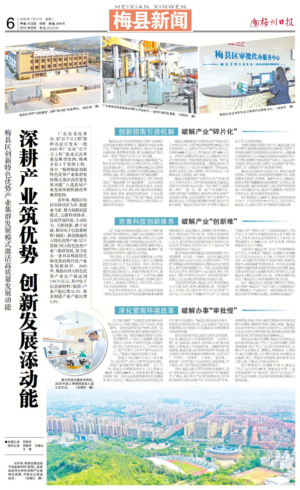 广东省委改革办、省“百千万工程”指挥办近日发布一批2025年广东省“百千万工程”集成式改革基层典型案例,梅州市有2个案例上榜。其中,“梅州梅县创新特色优势产业集群发展模式激活高质量发展动能”入选县域产业发展体制机制改革典型案例。