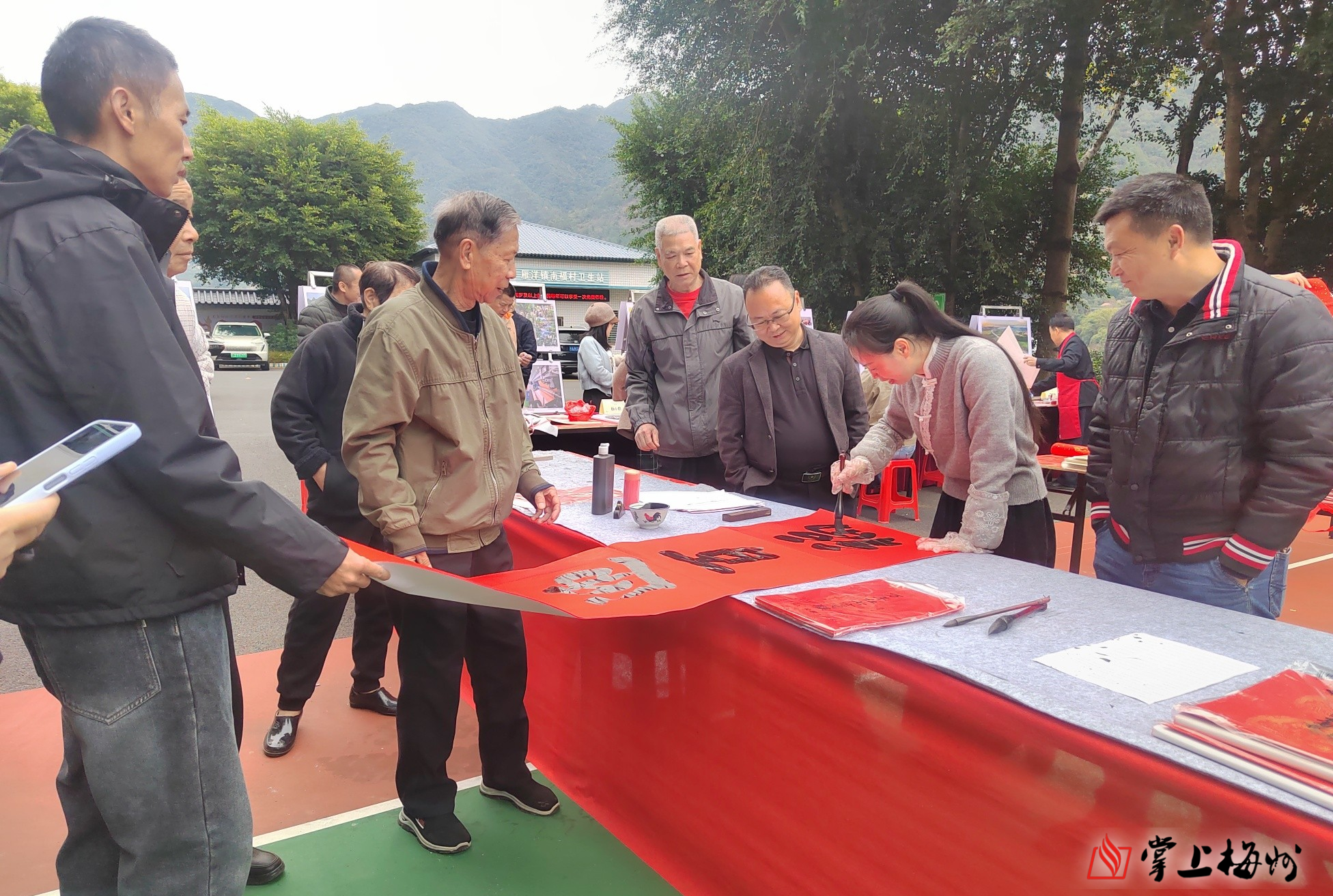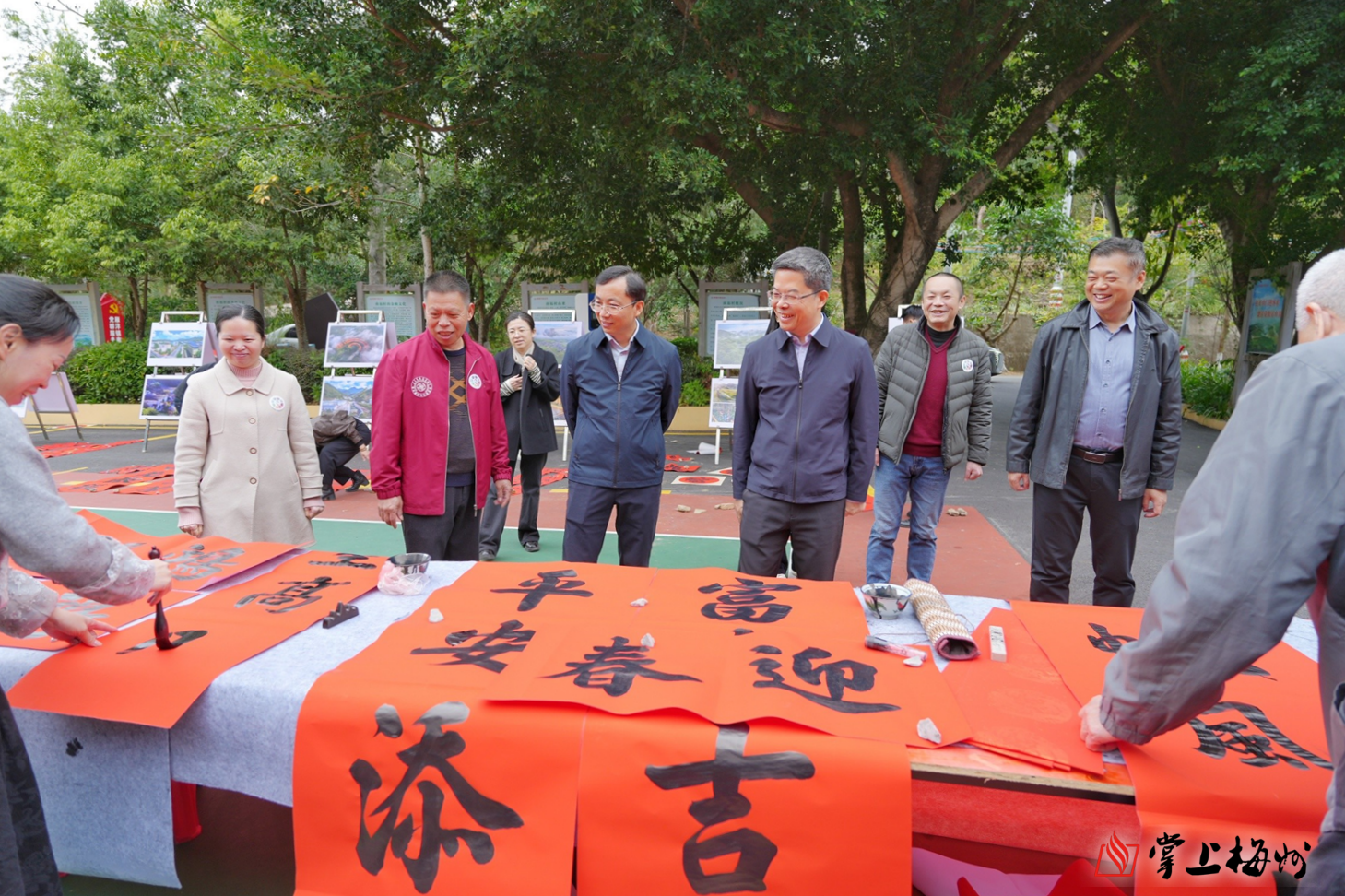 掌上梅州讯 2月7日,梅州市梅县区雁洋镇南福村暖意融融、年味洋溢,“粤美村晚·迎新春”系列活动在这里举行,梅州文艺志愿者也走进南福村开展挥春送福、主题摄影展、美术创作于一体的惠民集市,让当地群众近距离感受中华优秀传统文化与客家艺术的魅力,也以文艺为纽带,增进邻里情感,凝聚乡村温情。广东省文联党组书记、专职副主席王垂林,省文联党组成员、专职副主席高景海,梅州市文联党组书记、主席陈锐锋等参加活动。