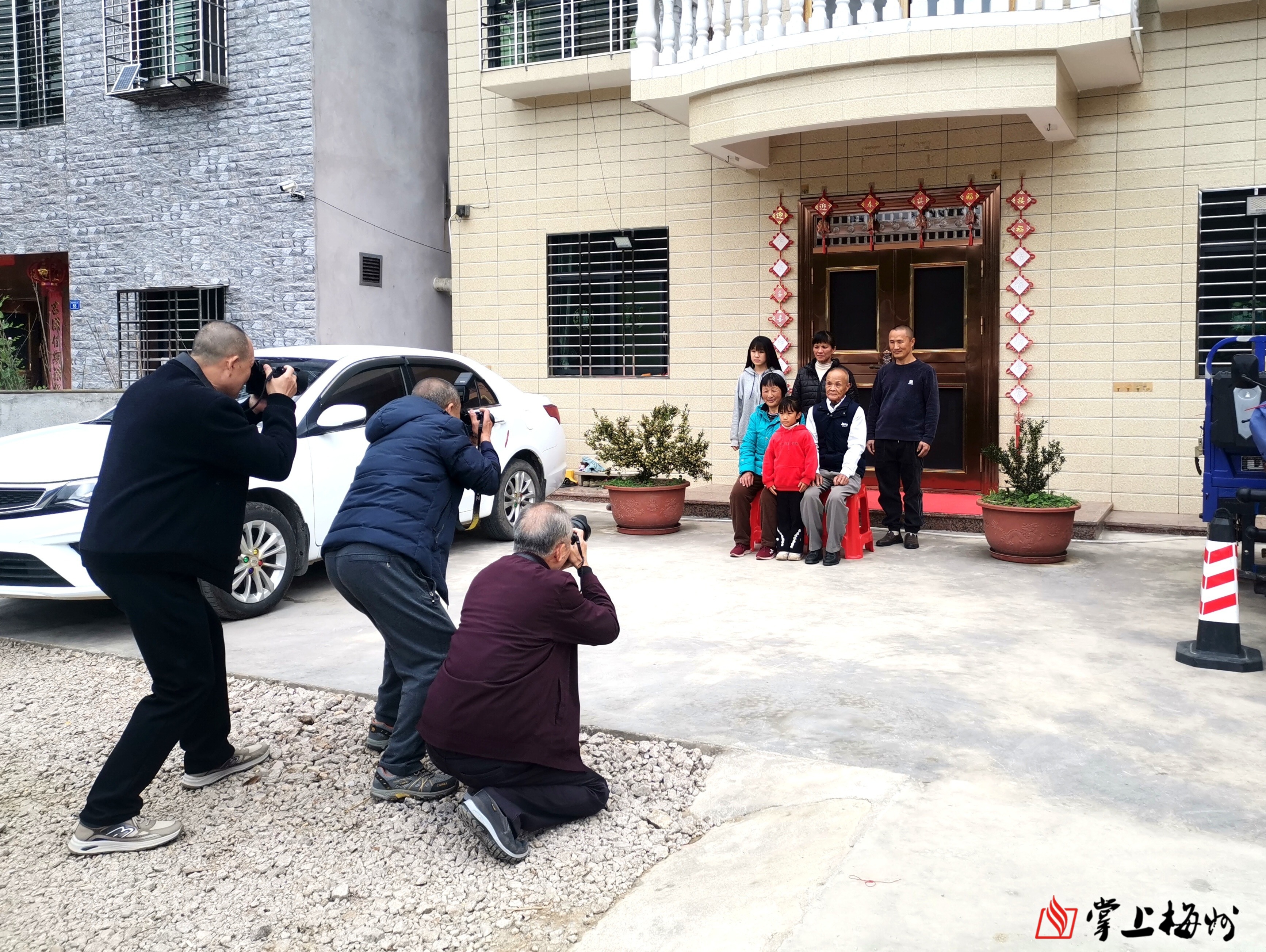 活动当天,梅州市摄影家协会主席张明、深圳市火凤凰摄影协会主席黄婷与40余名摄影文艺志愿者,组建8支服务小组,每村分设4组,携带专业摄影设备穿梭于村落街巷、走进群众家中,重点为辖区内百岁老人、老党员、老复员退役军人等100户特殊家庭拍摄“幸福大片”。