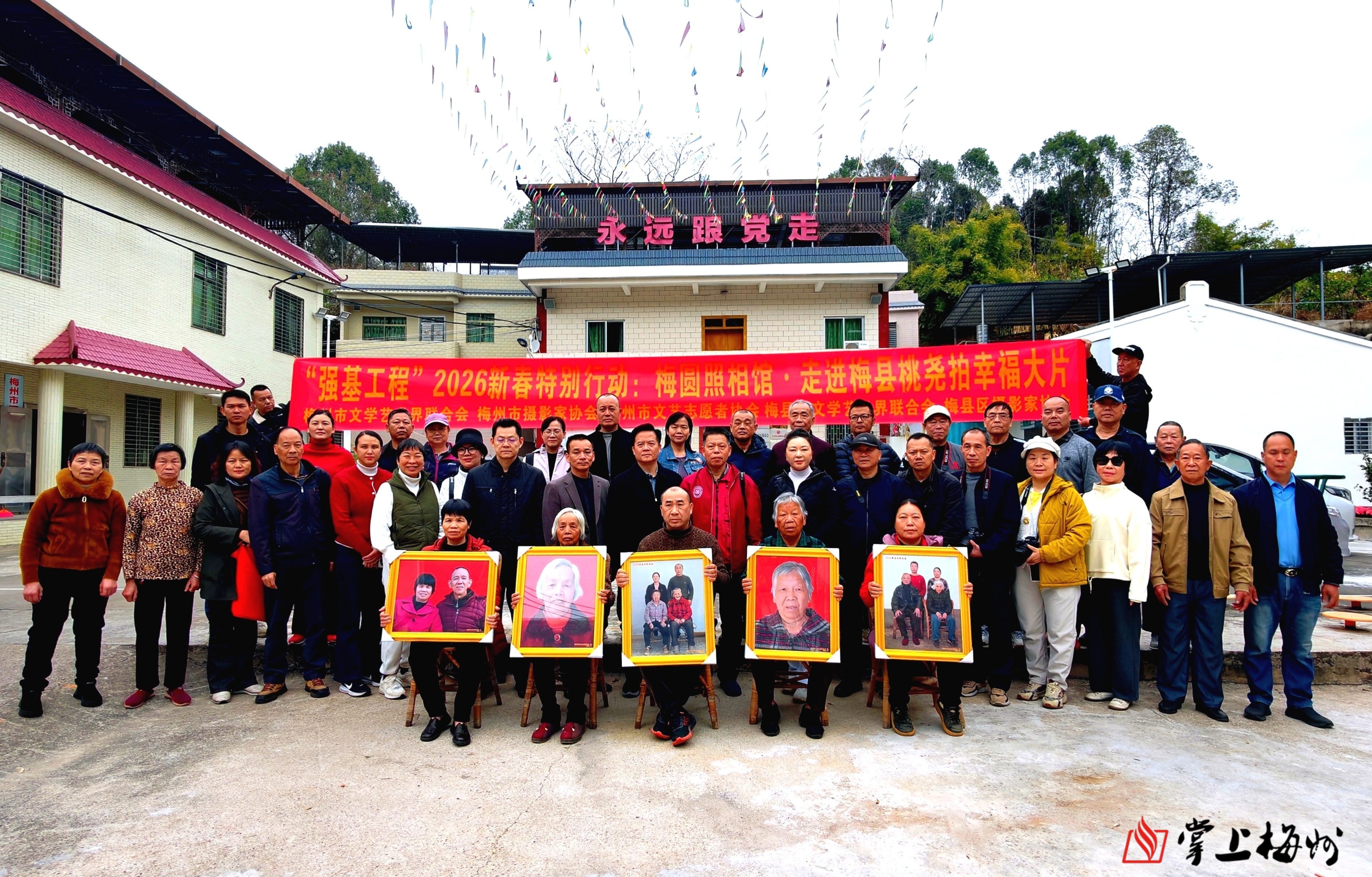 掌上梅州讯 2月11日,“强基工程”2026新春特别行动——“梅圆照相馆·走进梅县桃尧拍幸福大片”活动在梅县区桃尧镇温情举行。本次活动由梅州市文学艺术界联合会、梅州市摄影家协会、梅州市文艺志愿者协会、梅县区文学艺术界联合会、梅县区摄影家协会联合主办,以“文艺服务到一线,光影记录幸福年”为宗旨,深入桃尧镇桃源村、桃溪村,为100户特殊家庭留存新春珍贵记忆,用镜头扎根人民、定格美好,助力“幸福桃尧”建设。