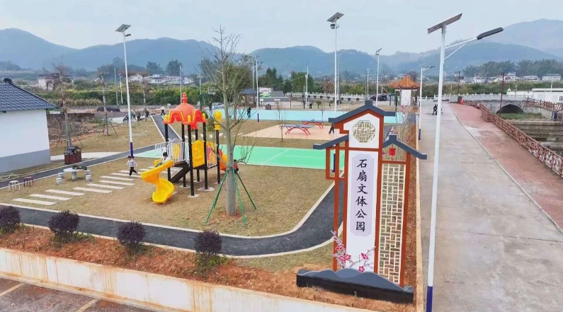 石扇镇聚焦群众急难愁盼问题,着力补齐公共设施短板,让发展成果更多更公平地惠及百姓。2025年底,石扇文体公园在石扇镇松林村落成,项目占地面积约3900平方米,总投资约100万元。公园绿化率达65%,内设有篮球场、乒乓球场、羽毛球场、停车场、凉亭、健身步道及舞台广场等设施,同时配套建设了公厕、休闲座椅、体育健身器材与儿童休闲设施,如今已成为当地居民锻炼、娱乐与交流的理想场所。