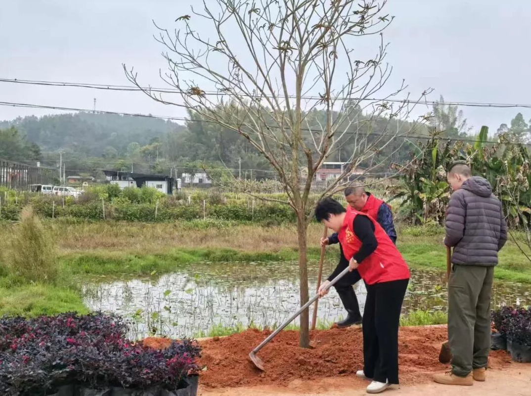 日前,梅县区水车镇鹅峰村开展植树活动,40余名镇村干部、群众代表及林业专家齐聚主村道沿线,共同栽种120棵黄花风铃木与红檵木,以实际行动为乡村添绿,扮靓村容村貌。