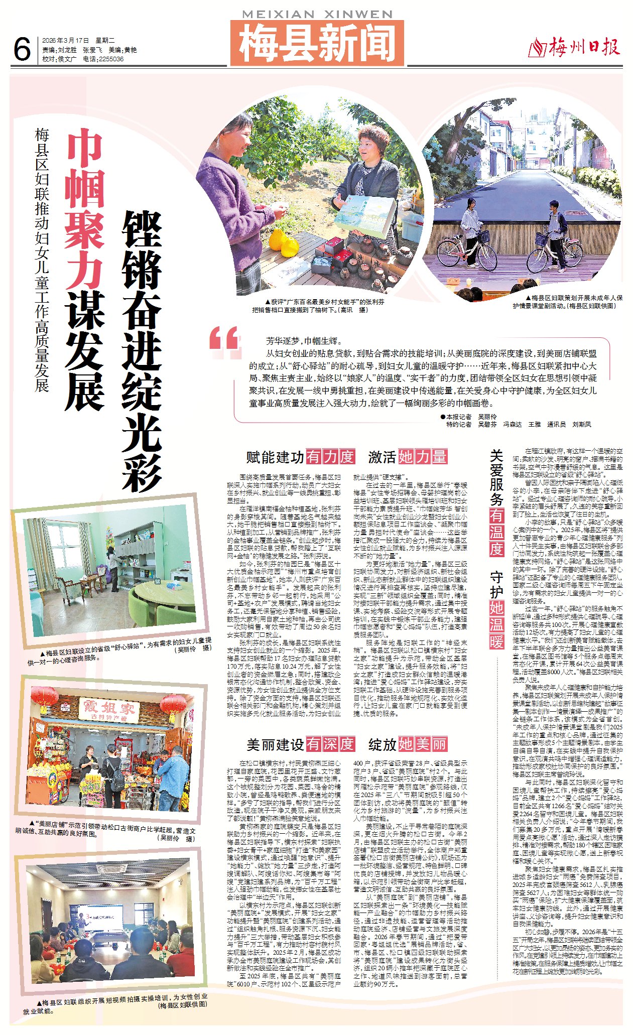 从妇女创业的贴息贷款,到贴合需求的技能培训;从美丽庭院的深度建设,到美丽店铺联盟的成立;从“舒心驿站”的耐心疏导,到妇女儿童的温暖守护……近年来,梅县区妇联紧扣中心大局、聚焦主责主业,始终以“娘家人”的温度、“实干者”的力度,团结带领全区妇女在思想引领中凝聚共识,在发展一线中勇挑重担,在美丽建设中传递能量,在关爱身心中守护健康,为全区妇女儿童事业高质量发展注入强大动力,绘就了一幅绚丽多彩的巾帼画卷。