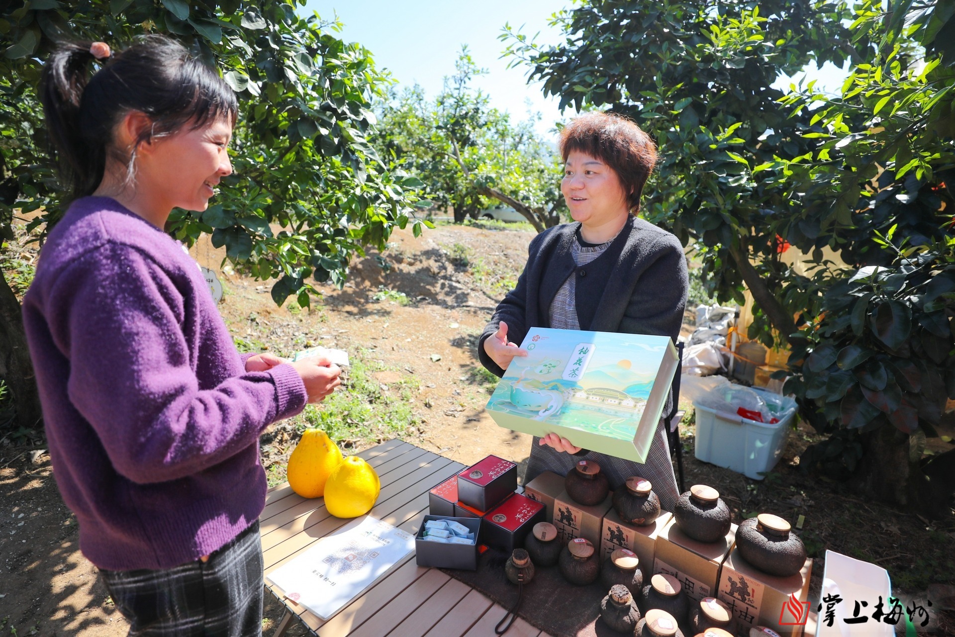 在雁洋镇南福金柚种植基地,张利芬的身影穿梭其间。随着基地名气越来越大,她干脆把销售档口直接搬到柚树下。从种植到加工,从营销到品牌推广,张利芬的金柚事业覆盖全链条。“创业起步时,梅县区妇联的贴息贷款,帮我踏上了‘互联网+金柚’的稳健发展之路。”张利芬说。