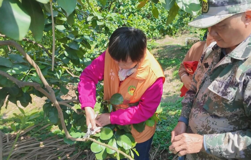 记者在现场看到,市、梅县区农技专业人员正认真开展入户指导。他们不仅为果农们送来了植物营养液,助力果树补充关键养分,还现场示范并详细讲解了疏花授粉和修剪技术,帮助果农提升管护水平。农技人员建议,柚农要落实肥水管理、促梢壮花、病虫害防治等相关举措,保障柚果产量与质量。