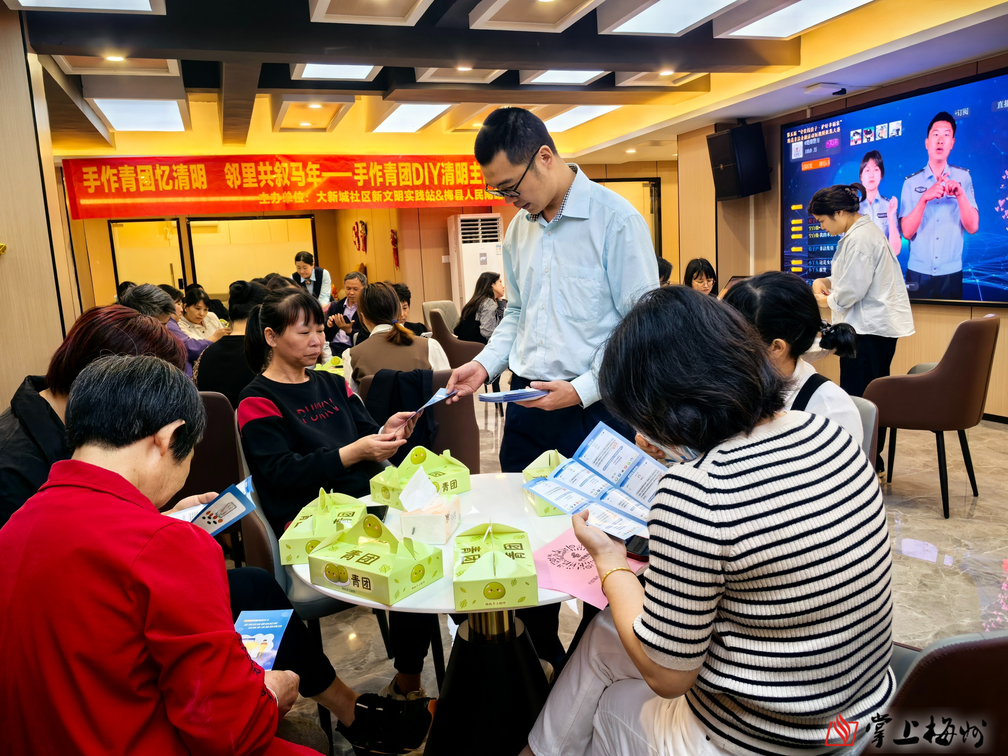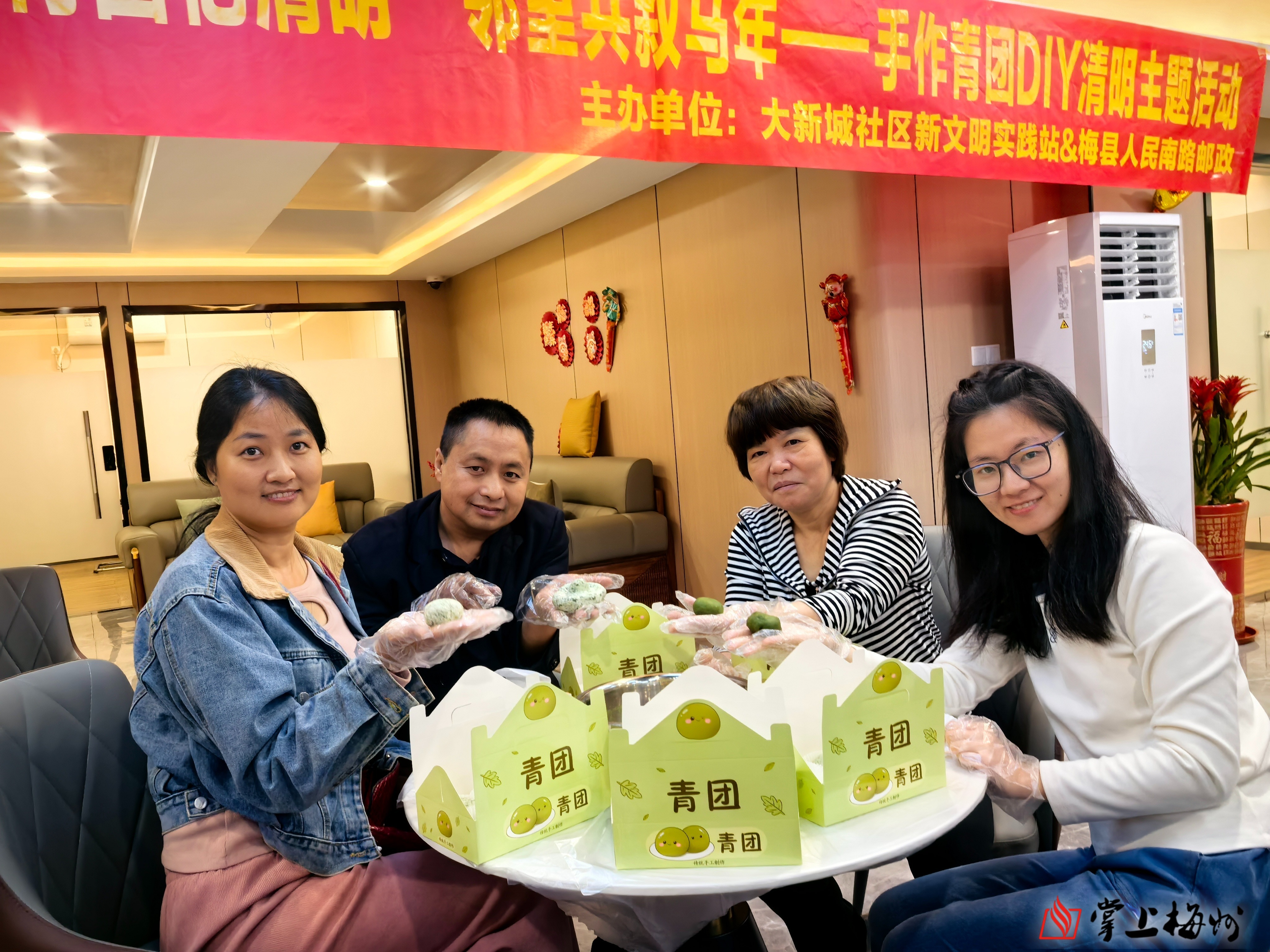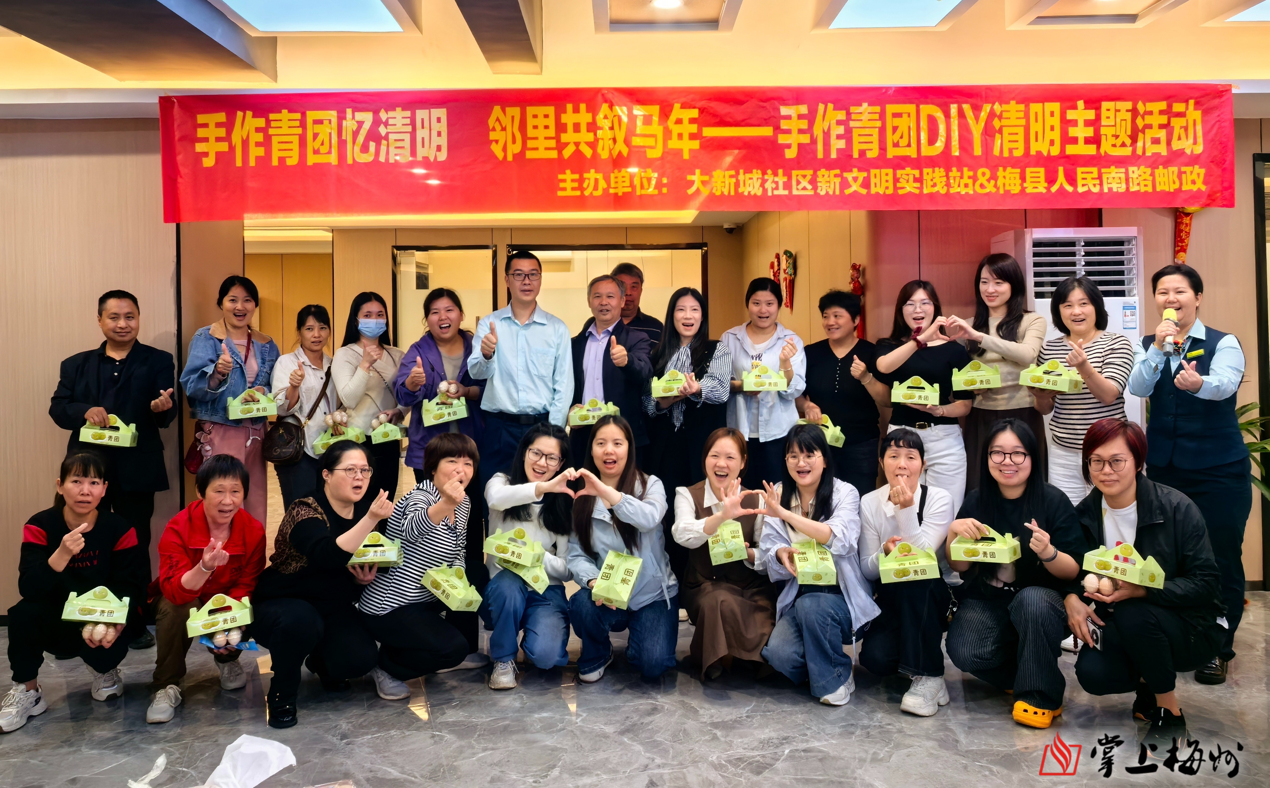 掌上梅州讯 4月1日,梅县区程江镇大新城社区联合中国邮政集团有限公司梅州市梅县区分公司(人民南路营业所)在辖区举行“情韵清明 邻里同行”主题活动,社区居民、党员及志愿者等齐聚一堂,在青团的清香与趣味互动中共话邻里温情。