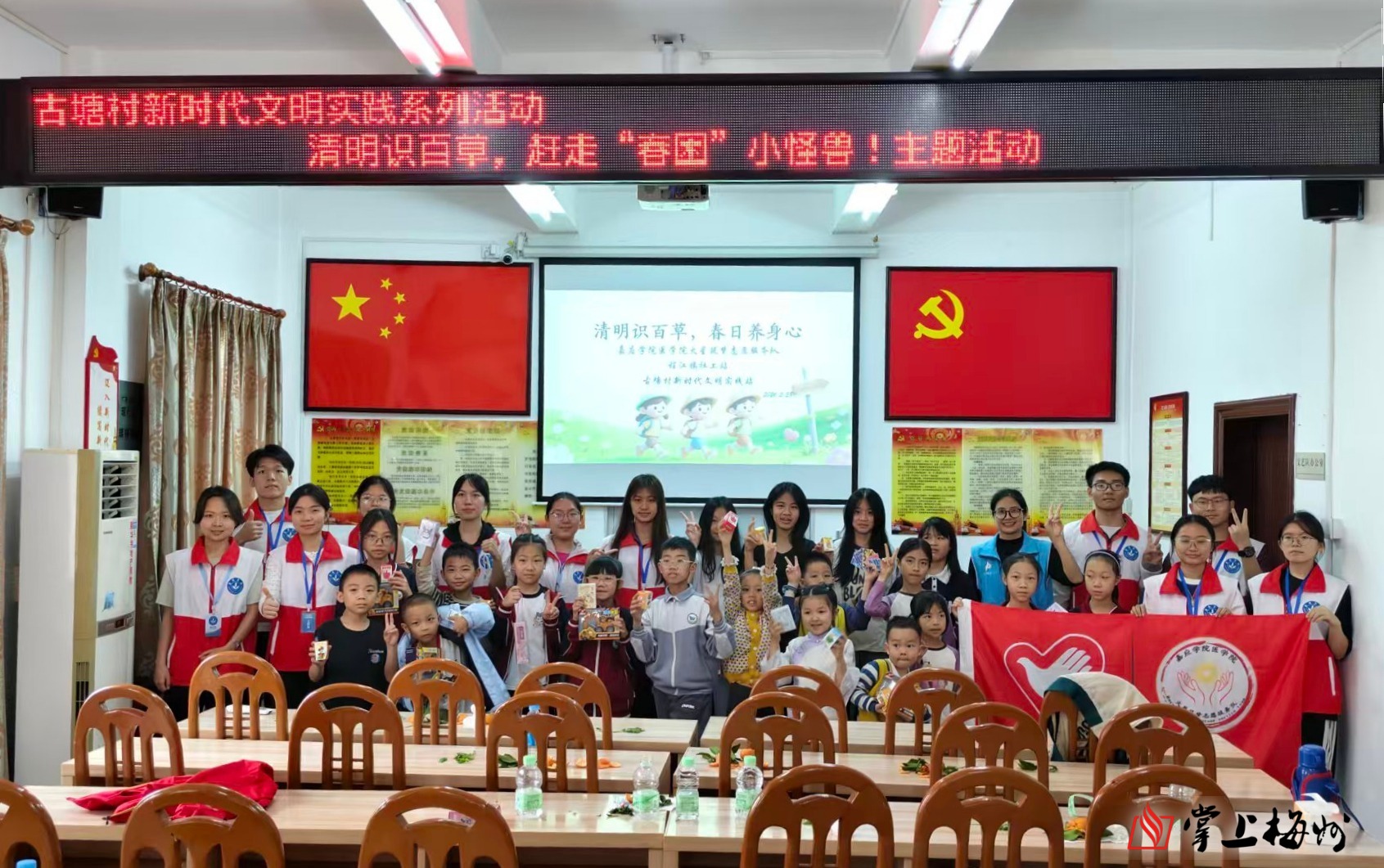 掌上梅州讯 日前,梅县区程江镇社工站联合嘉应学院医学院火星筑梦志愿服务队、程江镇古塘村新时代文明实践站在古塘村开展了一场别开生面的“清明识百草,春日养身心”趣味科普宣传活动,小朋友们化身“小小草药师”,在趣味游戏中学习清明文化、认识客家草药,度过了一个既长知识又充满欢笑的春日时光。