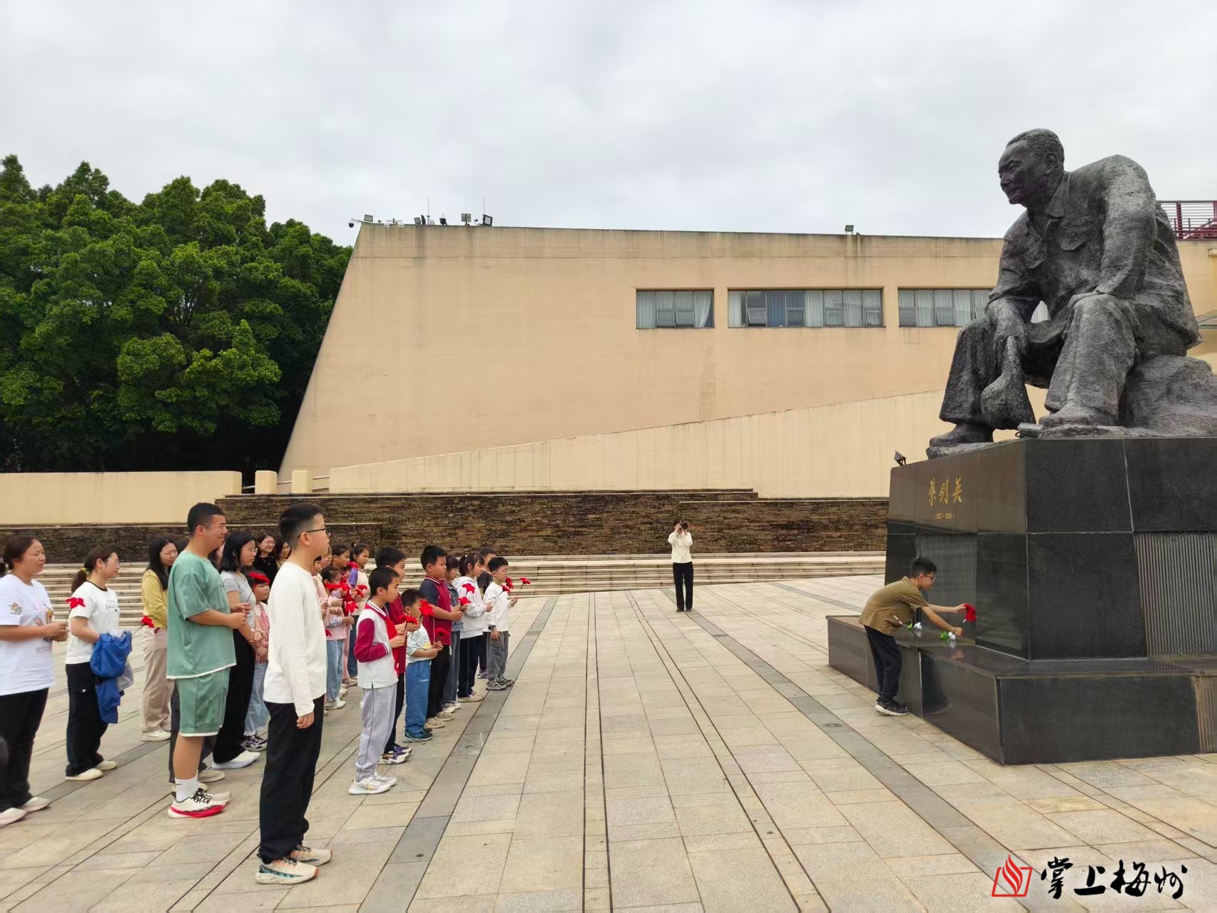 随后,孩子们手捧亲手制作的木棉花,与家长整齐列队,肃立于叶剑英元帅铜像前,深深鞠躬,并依次献上英雄花。整个过程简约而庄重,以真挚朴素的方式,表达对革命先辈的无尽追思。