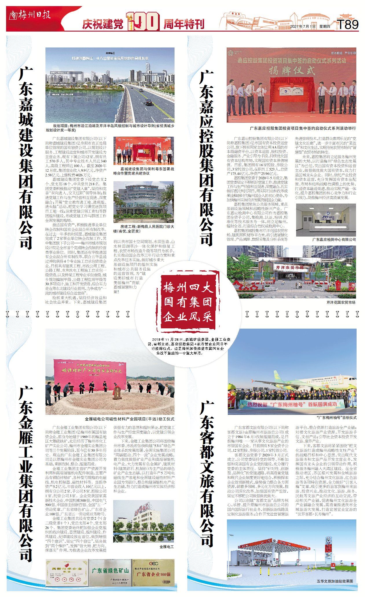 2019年11月28日,嘉城建设集团、金雁工业集团、客都文旅、嘉应控股集团4家市管企业同日举行挂牌仪式。这是梅州加快推进市属国有企业改革重组的一个重大举措。
