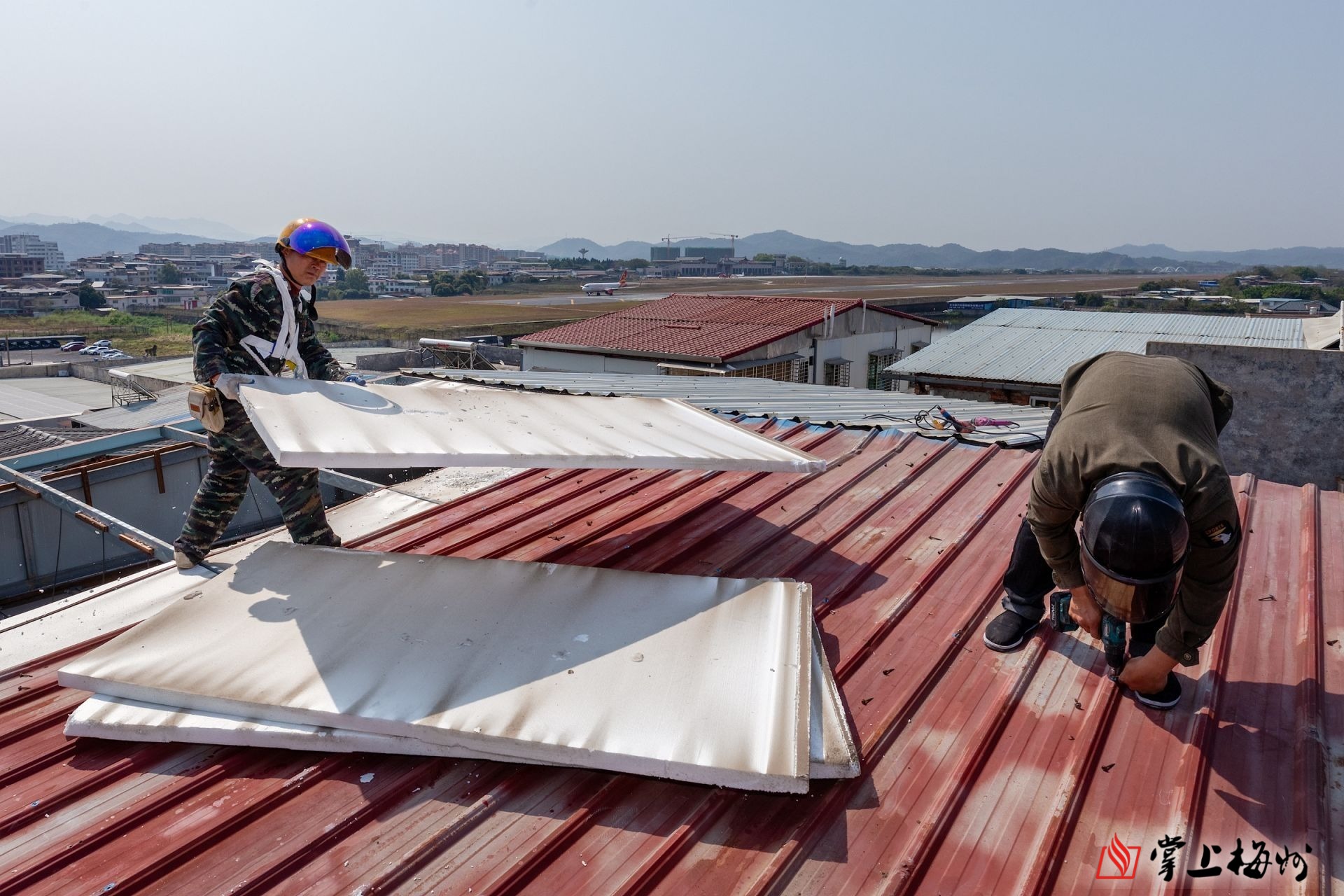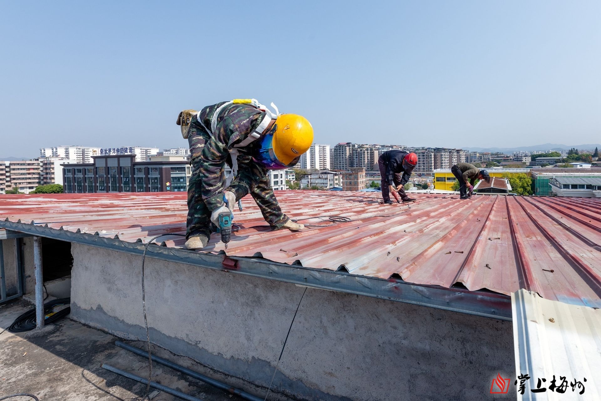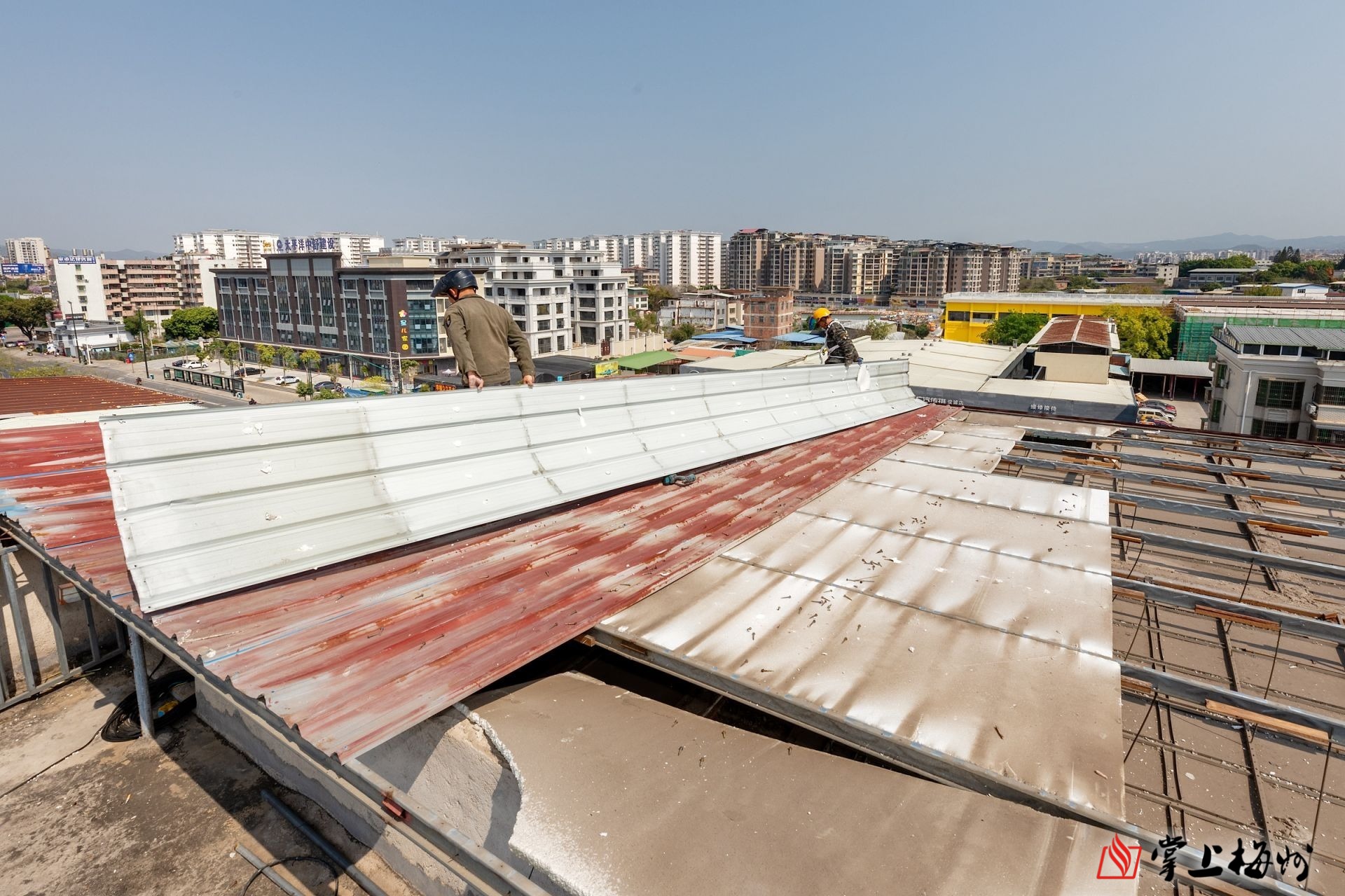今天上午,梅江区梅塘东路几间店铺门前,拉起警戒线,几名工人正在楼顶拆除铁皮瓦,记者在现场看见,大多拆除下来的铁皮瓦已锈迹斑斑。“2009年,为了隔热装上了铁皮瓦,后来铁皮瓦生锈,又再加盖了一层。现在统一拆除更安全、美观。”其中一家店铺业主叶先生说,拆除临时建筑(铁皮瓦)后,他准备安装屋顶光伏发电设施。“建设屋顶光伏发电设施政府给予200元/平方米补助,对我们来说也能减轻安装负担。”叶先生说。在他的带动下,周围几间店铺业主也同意拆除临时建筑(铁皮瓦)。