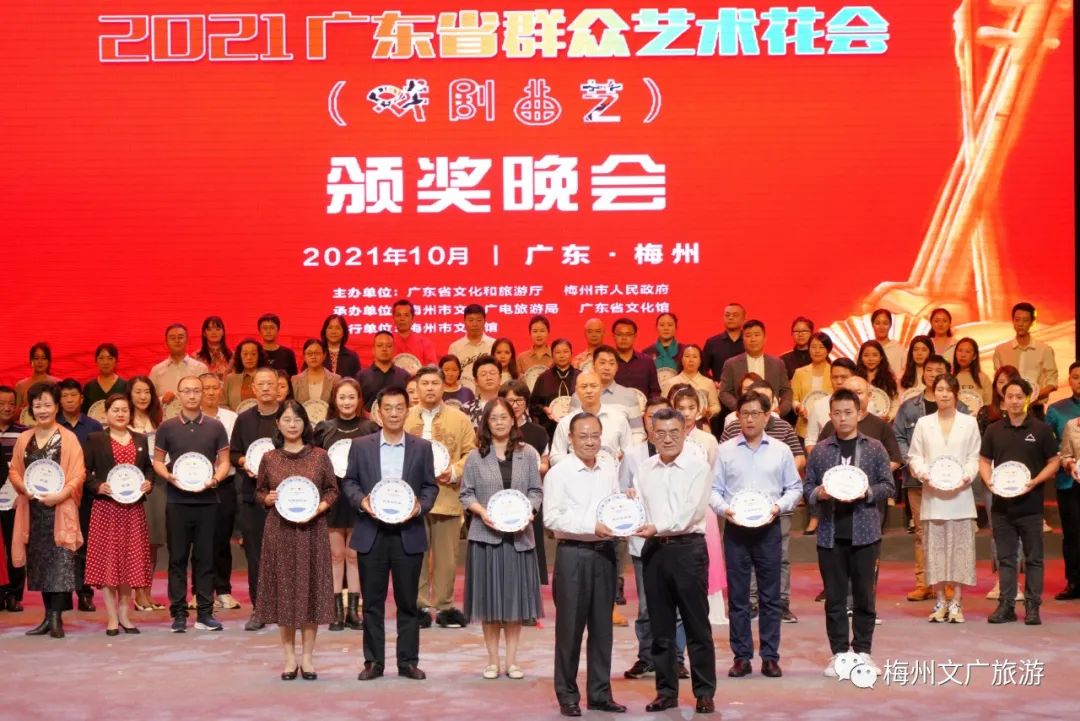 2021年,梅州市高水平承办了2021广东省群众艺术花会(戏剧曲艺),获评“优秀组织奖”“特别贡献奖”,获2金4铜佳绩,创下全市近年来的最好成绩。山歌剧《白鹭村》《林风眠》,音乐剧《血色三河》,广东汉剧《李坚真》赴广州参加“永远跟党走”——广东省庆祝中国共产党成立 100周年百场精品展演。
