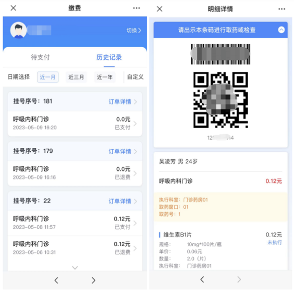 通过门诊缴费功能可以查询挂号、药品、诊疗、检查检验等相关的待支付项目,手机缴纳费用,还能查询到2023年8月25日之后产生的历史缴费记录,非常贴心。