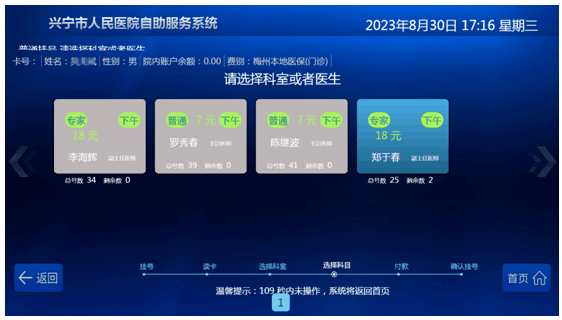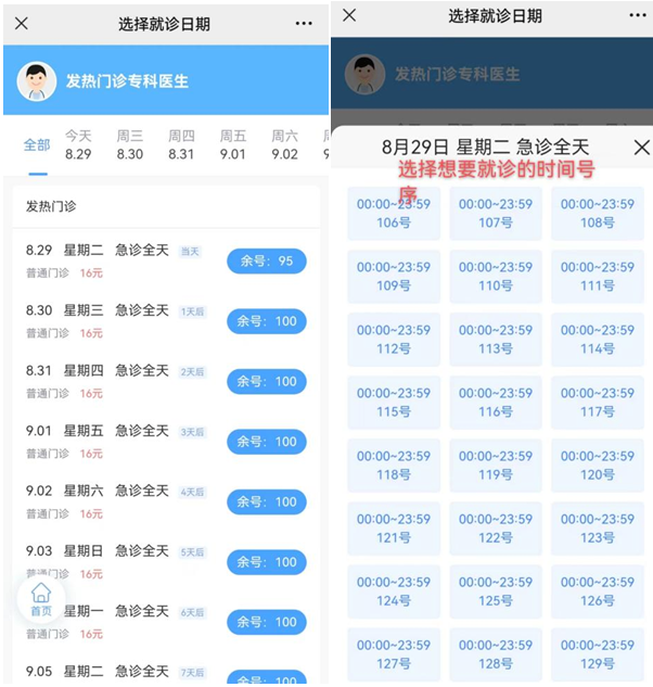 第6步,进入指定科室后,选择指定医生的号源(灰色表示无号)