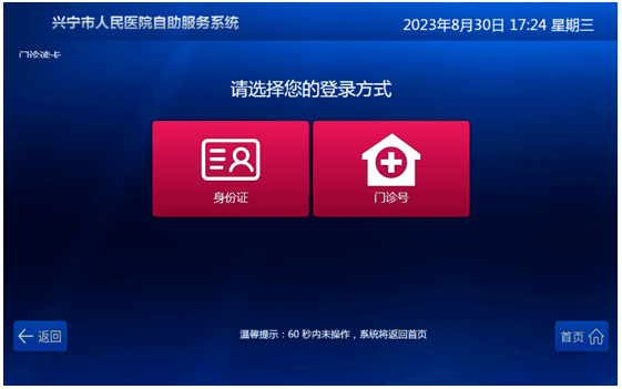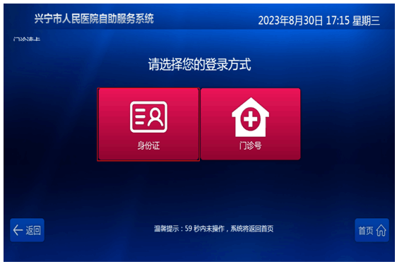 第2步,点击身份证或者门诊号,下面操作按照身份证演示