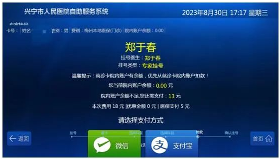 第8步,此图是选择医保之后,下一步选择要支付的方式