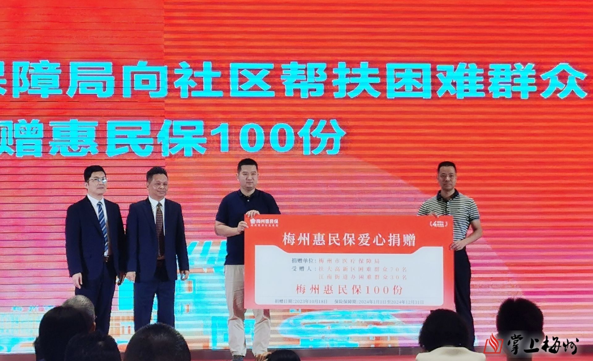 在活动现场,市医疗保障局还向挂钩帮扶的社区留守儿童、孤寡老人、易致贫户等特殊人群捐赠了“梅州惠民保”100份。