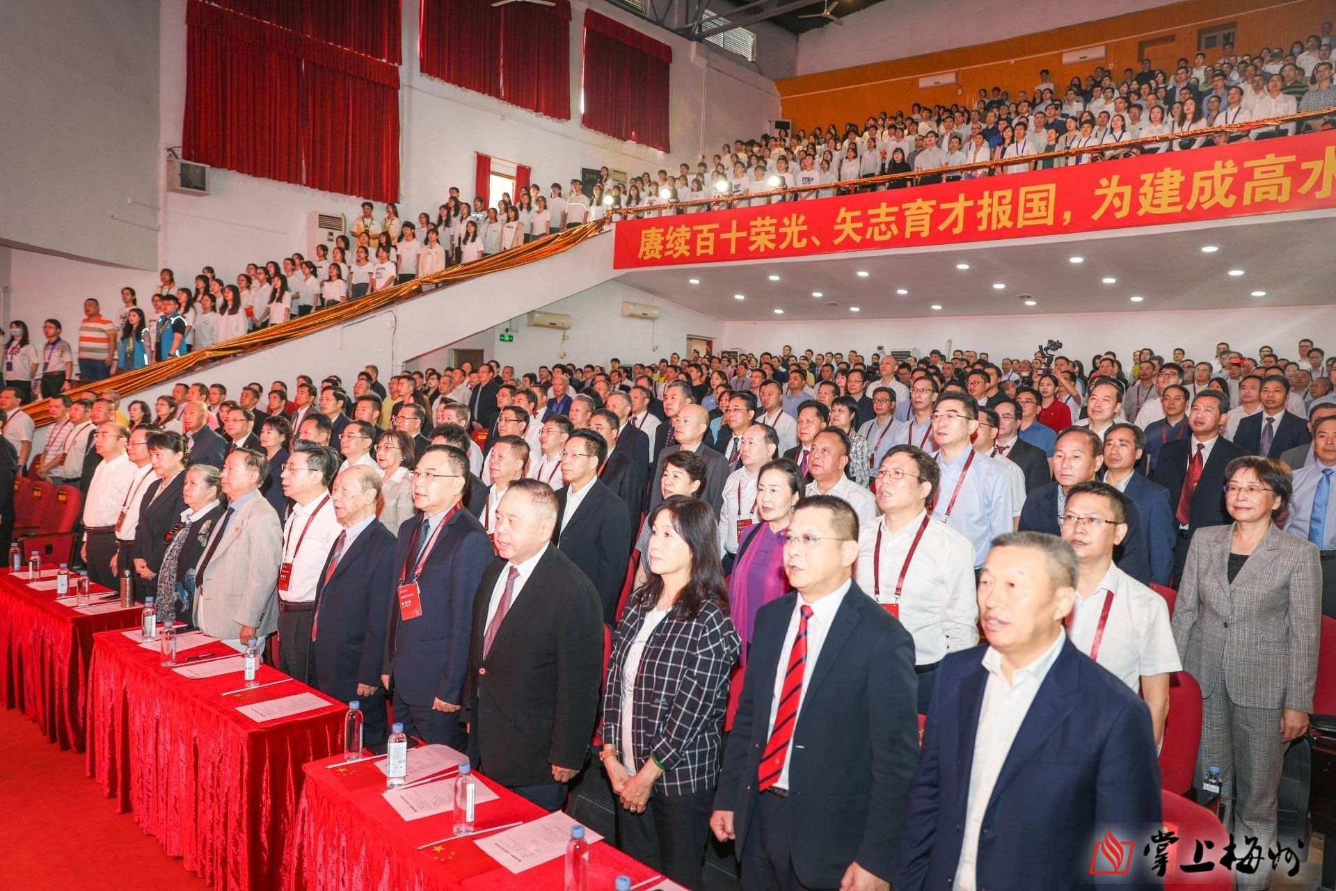 上午10时,精心装点后的德龙会堂热闹非凡,历届校领导、兄弟院校代表、校友乡贤代表、师生代表等上千人齐聚一堂,共话同窗、桑梓情。