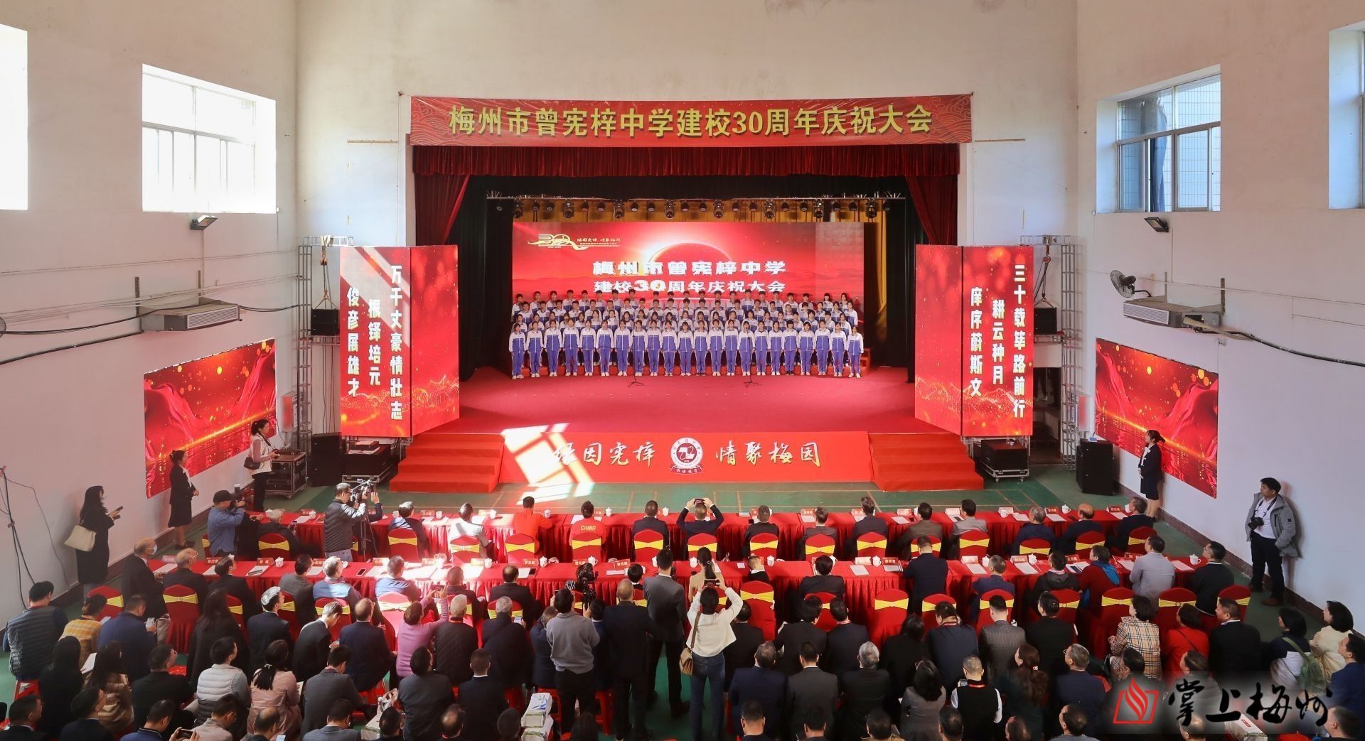 掌上梅州讯 三秩芳华,征程如歌。11月18日,梅州市曾宪梓中学举行建校30周年庆典活动,海内外校友和在校师生、社会各界人士通过“线下+线上”的方式欢聚一堂,共享校庆荣光。