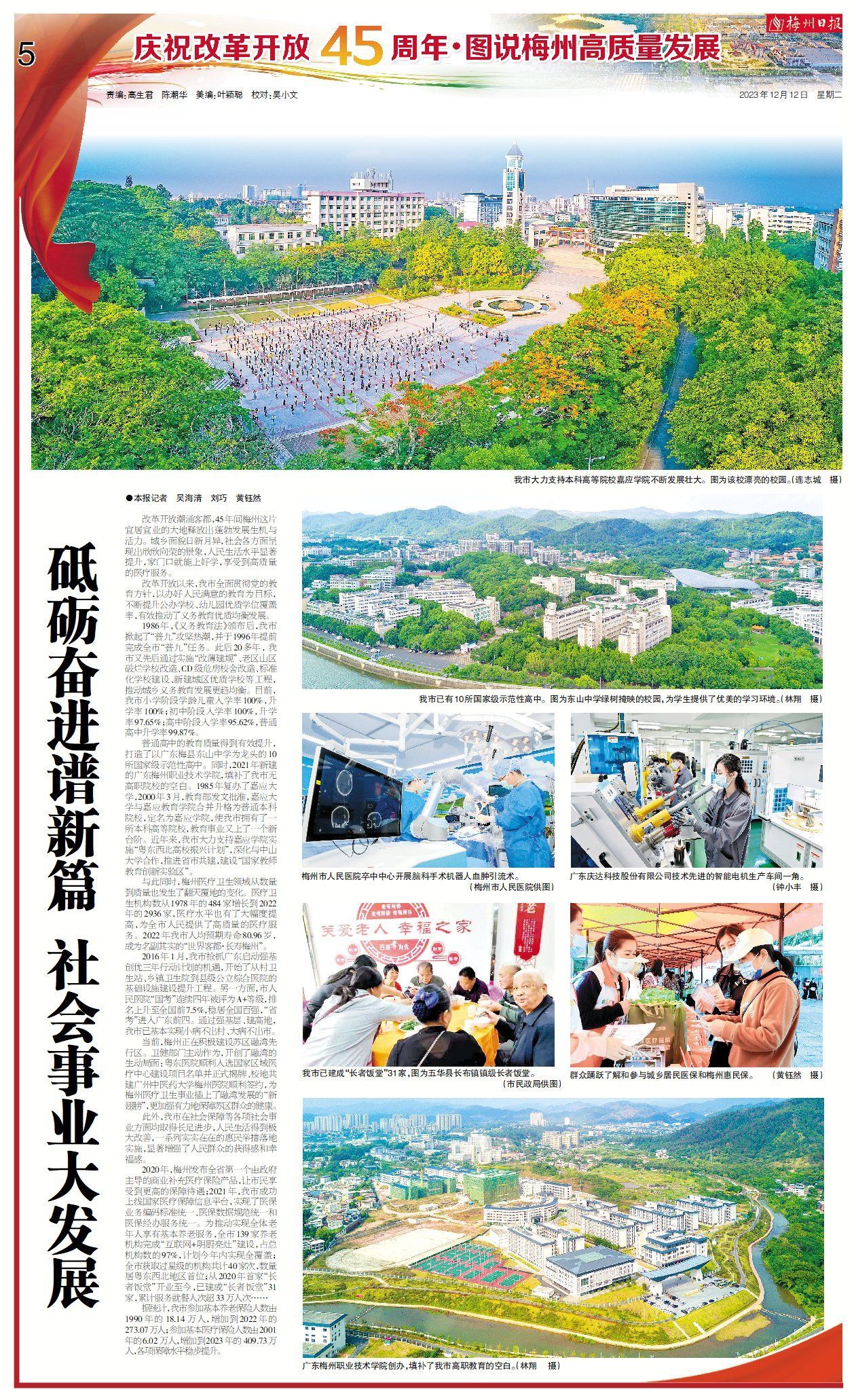 改革开放潮涌客都,45年间梅州这片宜居宜业的大地释放出蓬勃发展生机与活力。城乡面貌日新月异,社会各方面呈现出欣欣向荣的景象,人民生活水平显著提升,家门口就能上好学,享受到高质量的医疗服务。