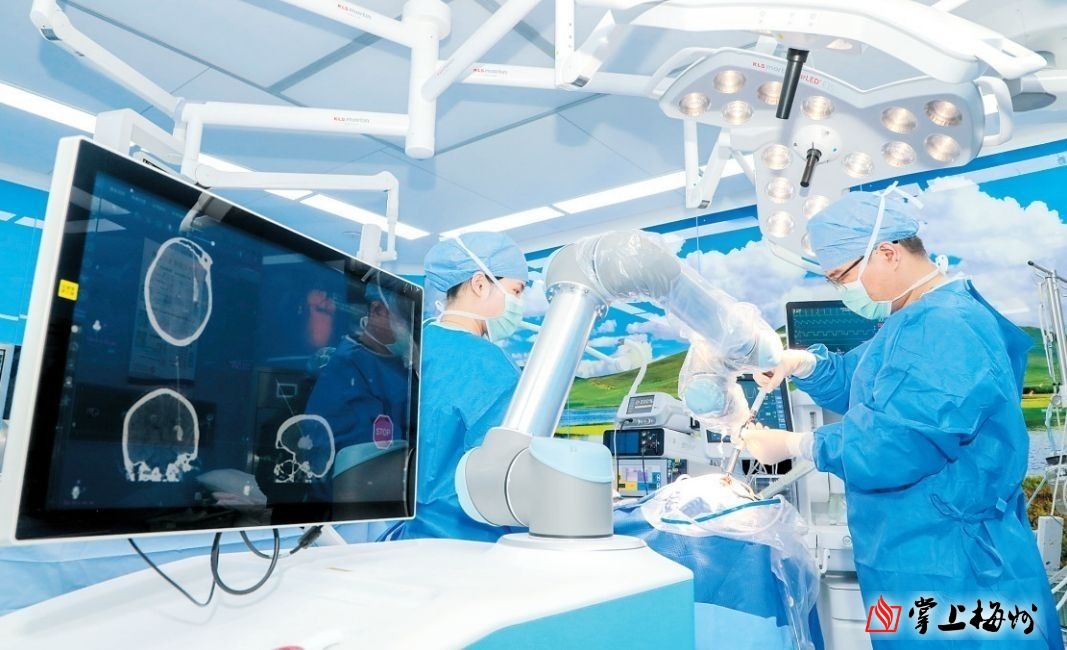 梅州市人民医院卒中中心开展脑科手术机器人血肿引流术。(梅州市人民医院供图)